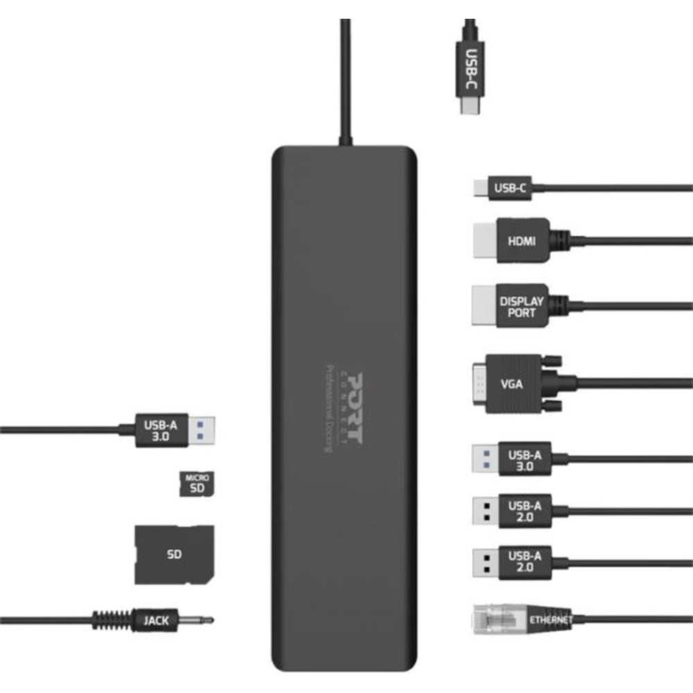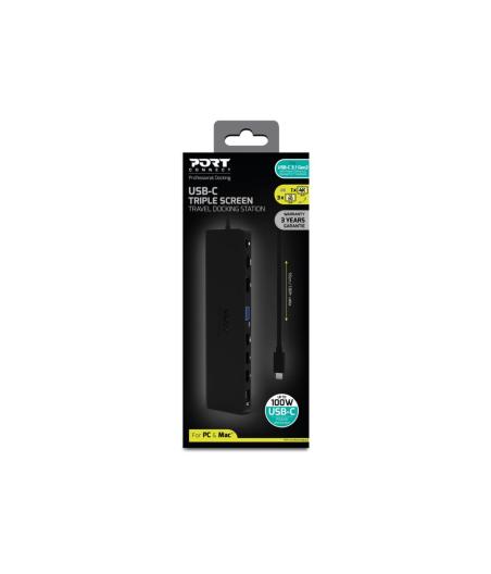 PORT connect TRIPLE SCREEN TRAVEL - Station d'accueil - USB-C 3.1 Gen 2 - VGA, HDMI, DP - 1GbE