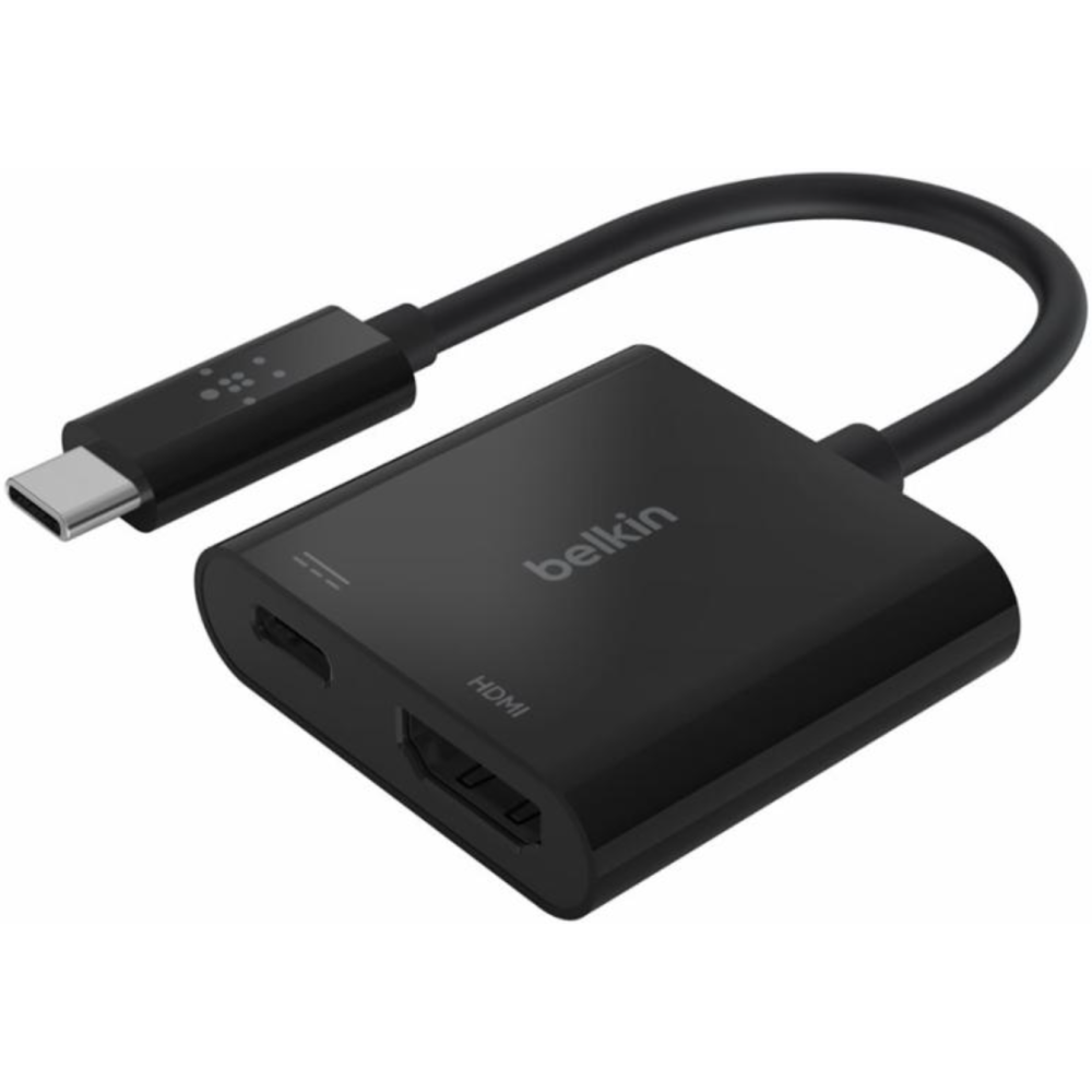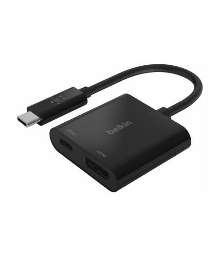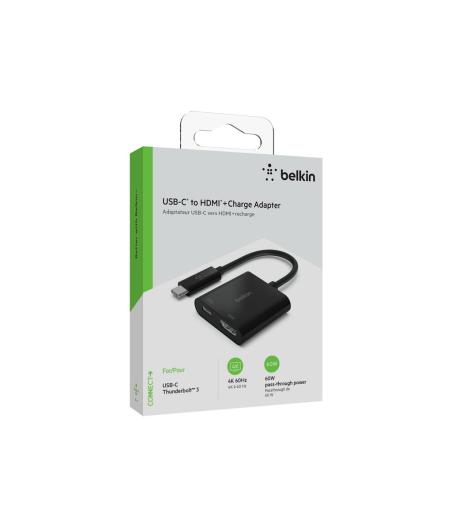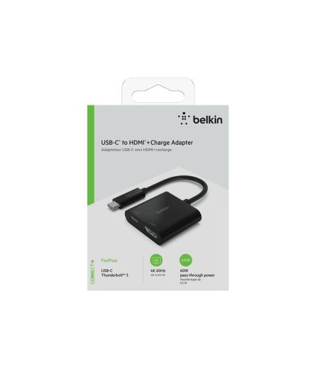 Belkin USB-C to HDMI + Charge Adapter - Adaptateur vidéo - 24 pin USB-C mâle pour HDMI, USB-C (alimentation uniquement) femelle - noir - support 4K, USB Power Delivery (60W)