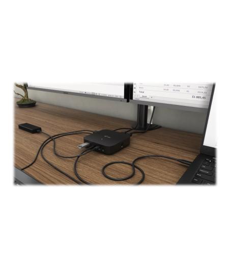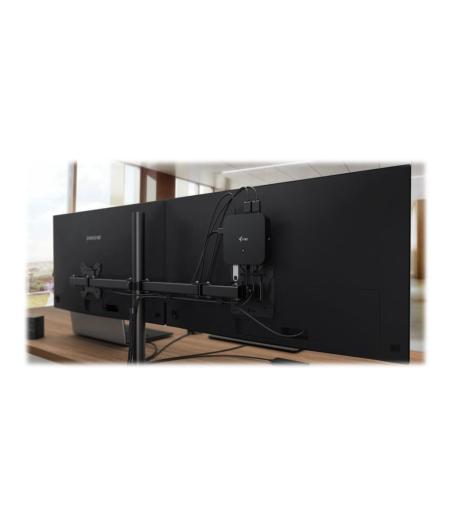 | Cette station est compatible avec tous les types d'ordinateurs portables équipés d'un port USB-C ou Thunderbolt 3. 6 ports USB, connexion rapide et fiable au réseau de la société grâce à un port LAN intégré, alimentation inédite et installation derrière le moniteur - cette station d'accueil sera donc un partenaire idéal pour les professionnels. Cette station pourra bien entendu alimenter votre ordinateur portable ou votre tablette et ce jusqu'à 100 W. Le protocole DP 1.4 intégré est également compatible avec une résolution de 5K/60 Hz, ce qui sera particulièrement apprécié par les graphistes professionnels, les analystes de données, les éditeurs de films et éventuellement aussi par les amateurs de vidéos haute définition. |