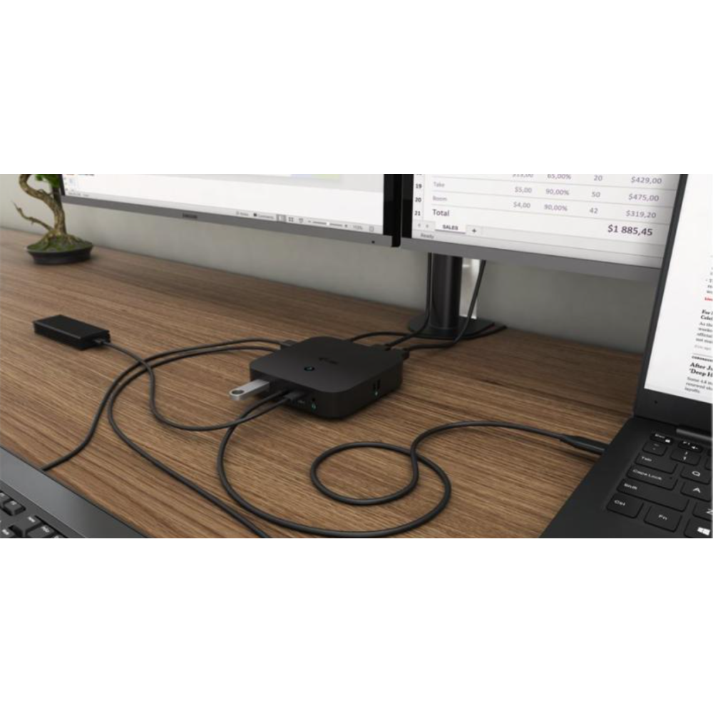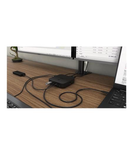 Cette station est compatible avec tous les types d'ordinateurs portables équipés d'un port USB-C ou Thunderbolt 3. 6 ports USB, connexion rapide et fiable au réseau de la société grâce à un port LAN intégré, alimentation inédite et installation derrière le moniteur - cette station d'accueil sera donc un partenaire idéal pour les professionnels. Cette station pourra bien entendu alimenter votre ordinateur portable ou votre tablette et ce jusqu'à 100 W. Le protocole DP 1.4 intégré est également compatible avec une résolution de 5K/60 Hz, ce qui sera particulièrement apprécié par les graphistes professionnels, les analystes de données, les éditeurs de films et éventuellement aussi par les amateurs de vidéos haute définition. |