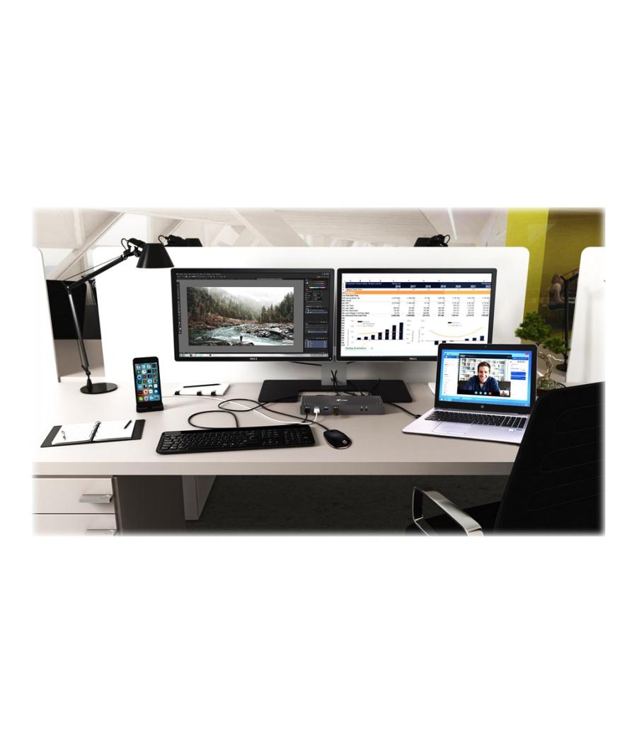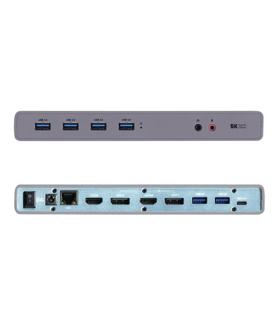 | Avec cette station d'accueil universelle i-tec, vous obtenez une résolution graphique incroyable jusqu'à 5K / 60Hz. La station d'accueil se connecte via l'interface USB 3.0 et ne permet pas l'alimentation/charge des ordinateurs portables et tablettes. Personnalisez votre lieu de travail et connectez à votre ordinateur portable ou tablette, via l'interface USB-A 3.0 ou USB-C, vos accessoires préférés. Grâce à cette station d'accueil, vous ne serez pas constamment obligé de connecter et déconnecter tous les périphériques à chaque fois que vous prendrez votre ordinateur portable ou tablette avec vous. Un autre avantage est également un plus grand espace sur le bureau, qui ne sera plus encombré par des câbles. Il suffit de connecter la station d'accueil à l'aide d'un seul câble et vous pourrez immédiatement commencer à l'utiliser. Profitez d'une impressionnante expérience grand écran en regardant des films 4K / 60 Hz, des graphiques professionnels, des médias en continu, des diaporamas ou des sites Web. La station d'accueil est équipée de quatre sorties graphiques qui vous permettent d'utiliser de différentes combinaisons de deux écrans. Connectez 2 x HDMI ou 2 x Display Port ou 1 x HDMI et 1 x Display Port, avec une constante résolution 4K jusqu'à 4096 x 2160 à 60 Hz. Avec la connexion d'un seul moniteur via 2 câbles DP, vous pourrez obtenir une résolution 5K jusqu'à 5120 x 2880 à 60 Hz, mais la carte graphique de votre ordinateur doit supporter une résolution de 5K. Avec son puissant et propre contrôleur DL 6950, votre station d'accueil n'encombrera pas votre ordinateur portable ou votre tablette. La station d'accueil offre également une entrée / sortie audio, une carte réseau gigabit, six ports USB 3.0, un verrou Kensington et un interrupteur ON / OFF. En outre, il dispose d'un design compact et élégant et d'un système de refroidissement passif |
