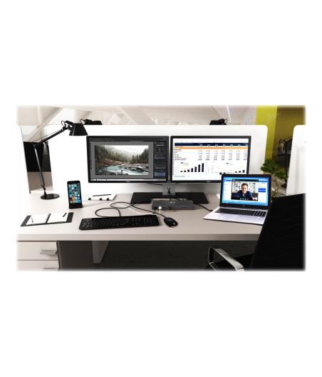 | Interfaces | 2 x affichage / vidéo - HDMI de 19 broches de type A 1 x réseau - 10Base-T/100Base-TX/1000Base-T - RJ-45 2 x affichage / vidéo - DisplayPort 20 broches 1 x USB-C - 24 pin USB-C 6 x SuperSpeed USB 3.0 - USB 9broches typeA 1 x audio - mini-phone 3,5 mm 1 x microphone - mini-phone 3,5 mm |