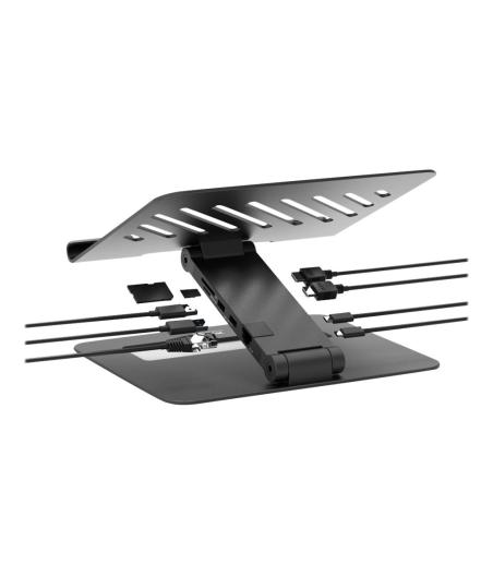 | La station d'accueil PORT Connect 901108DOCK 2-en-1 avec support pour ordinateur portable est la combinaison parfaite des deux mondes : connectivité & ergonomie. Elle peut gérer jusqu'à 7 appareils et fournit jusqu'à 85 W Power Delivery via un seul port USB-C sur votre ordinateur. Profitez d'un double affichage vidéo jusqu'à une résolution 4K Ultra HD via HDMI. Sa conception entièrement réglable améliore le confort et encourage une posture naturelle. La construction en aluminium empêche la surchauffe de l'ordinateur. Profitez d'un transfert de données ultra-rapide jusqu'à 5 Gbps via ses 2 ports USB-A. Compatible avec les ordinateurs portables jusqu'à 17 pouces via USB-C sous Windows, Mac OS, Chrome OS et Linux. | |