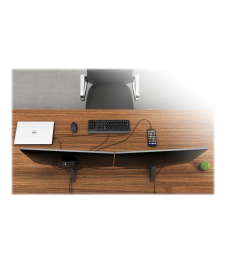 | Station d'accueil de bureau USB-C compatible avec 2 moniteurs externes ayant une résolution 4K. Cette station est compatible avec tous les types d'ordinateurs portables équipés d'un port USB-C ou Thunderbolt 3. 6 ports USB, connexion rapide et fiable au réseau de la société grâce à un port LAN intégré, alimentation jusqu'à W et installation derrière le moniteur - cette station d'accueil sera donc un partenaire idéal pour les professionnels. Cette station pourra bien entendu alimenter votre ordinateur portable ou votre tablette et ce, jusqu'à 100 W. Le protocole DP 1.4 intégré est également compatible avec une résolution de 5K/60 Hz, ce qui sera particulièrement apprécié par les graphistes professionnels, les analystes de données, les éditeurs de films et éventuellement aussi par les amateurs de vidéos haute définition. | |