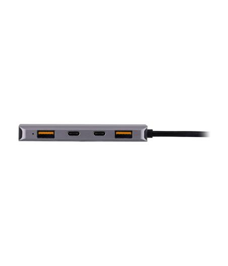 Doté d un design moderne, ce hub USB dispose de 4 ports de Type-A et de un port de Type-C Power Delivery : vous pourrez ainsi y équiper vos différents périphériques. Entrée : 20V/3A - USB 3.2 Type-C - Sortie : 3 x USB 3.2 Type-A, 1 x USB Type-C PD 3.0 60W - Taux de transfert : 5 Gbps - Autoalimenté - Dimensions : 75 x 45 x 15 mm - Compatible avec Mac OS, Windows, Linux, Android, iPad OS, etc.