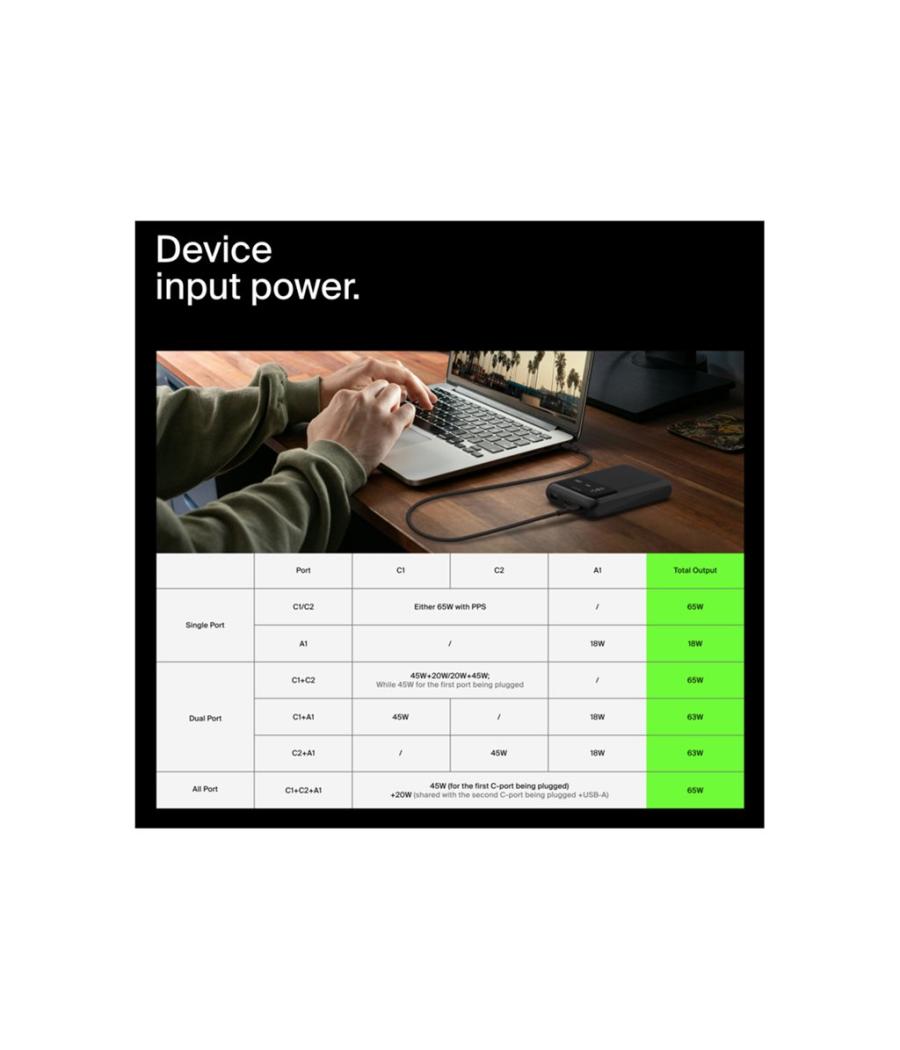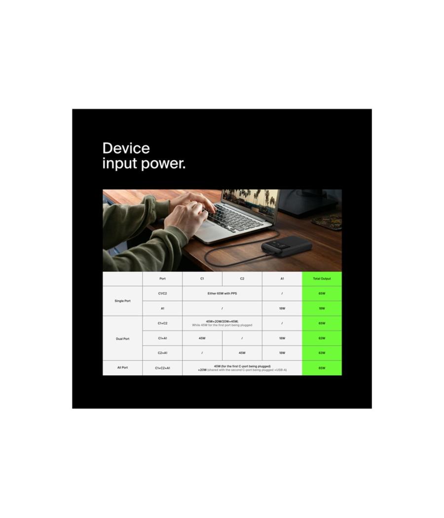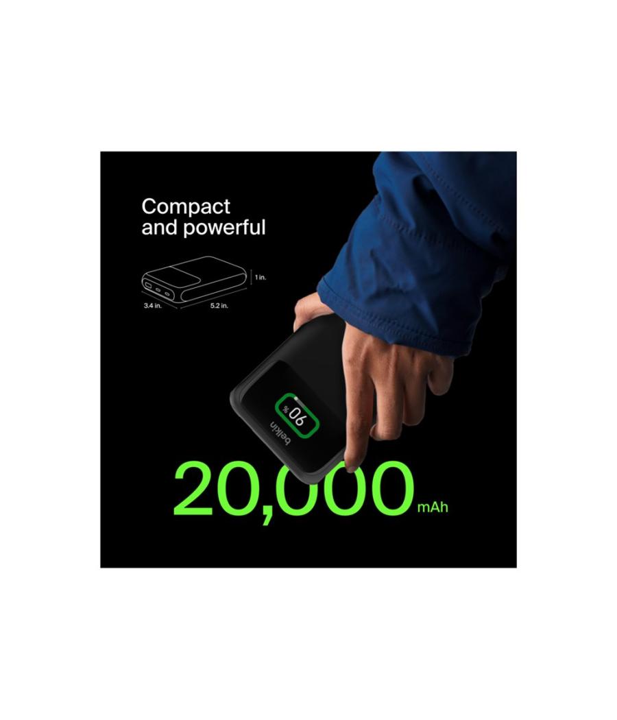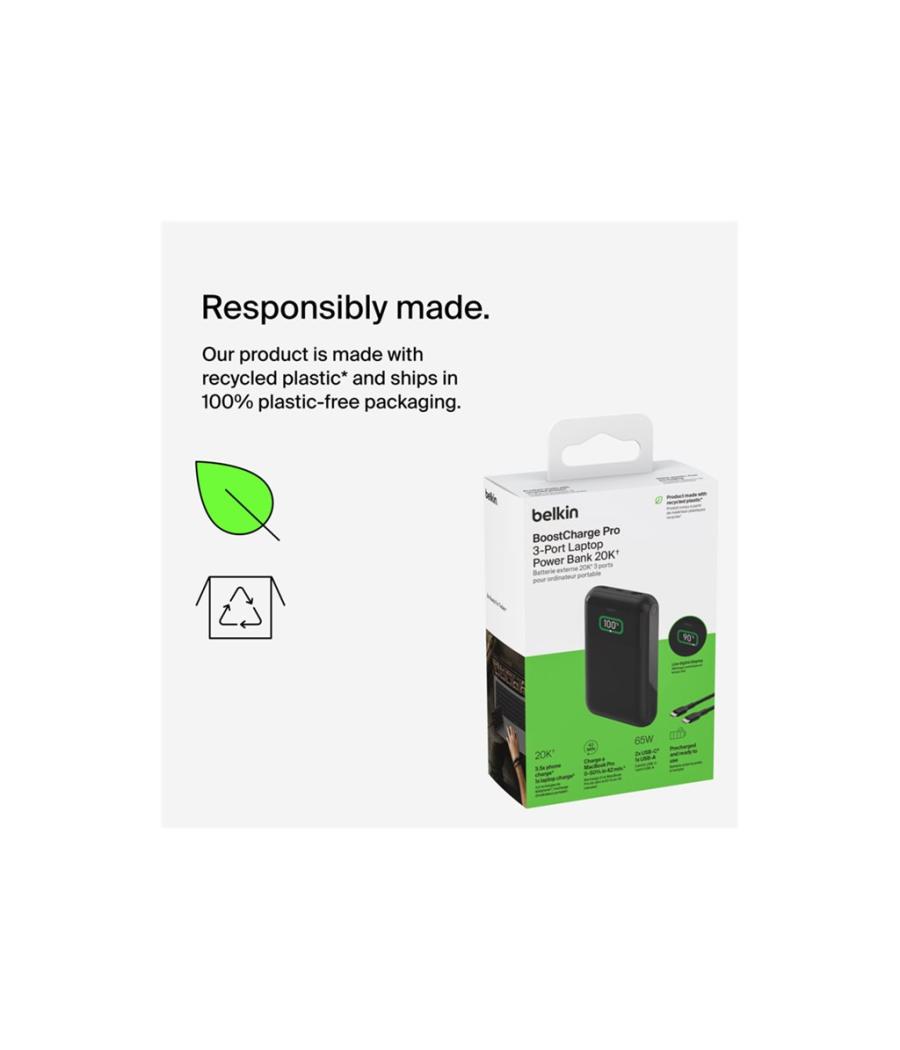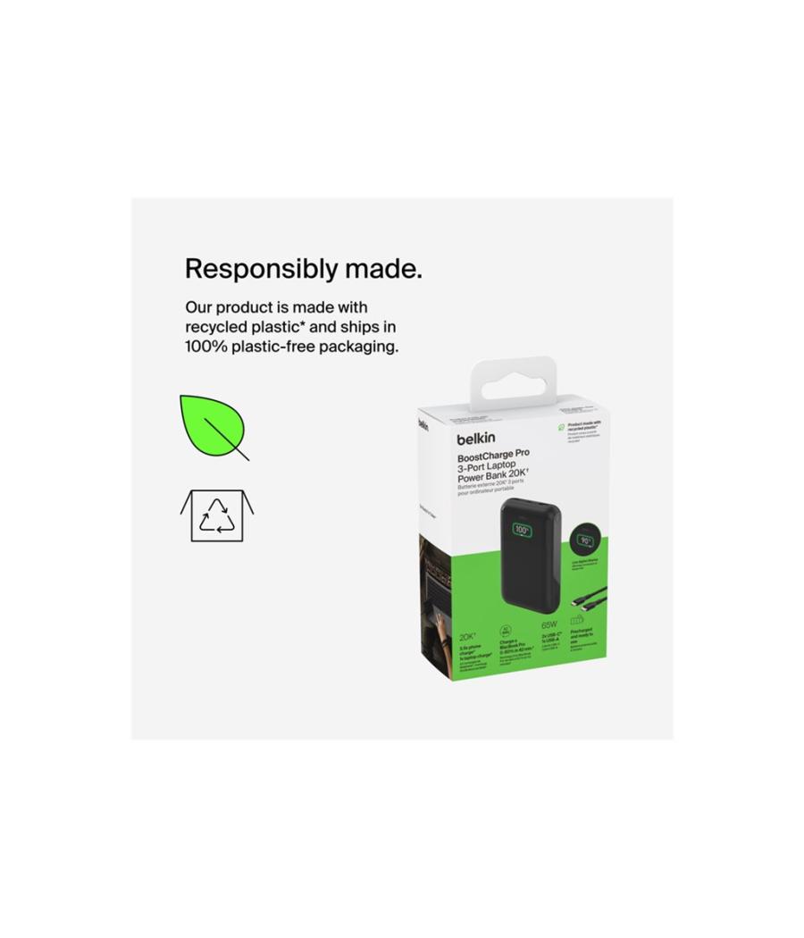 Belkin BoostCharge Pro - Banque d'alimentation - 20000 mAh - 65 Watt - Fast Charge, PD - 3 connecteurs de sortie (24 pin USB-C, USB)