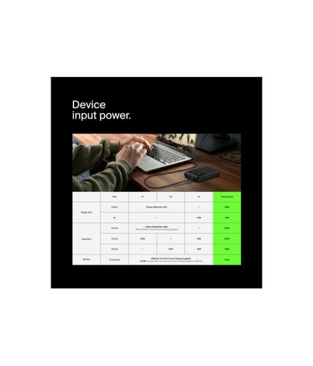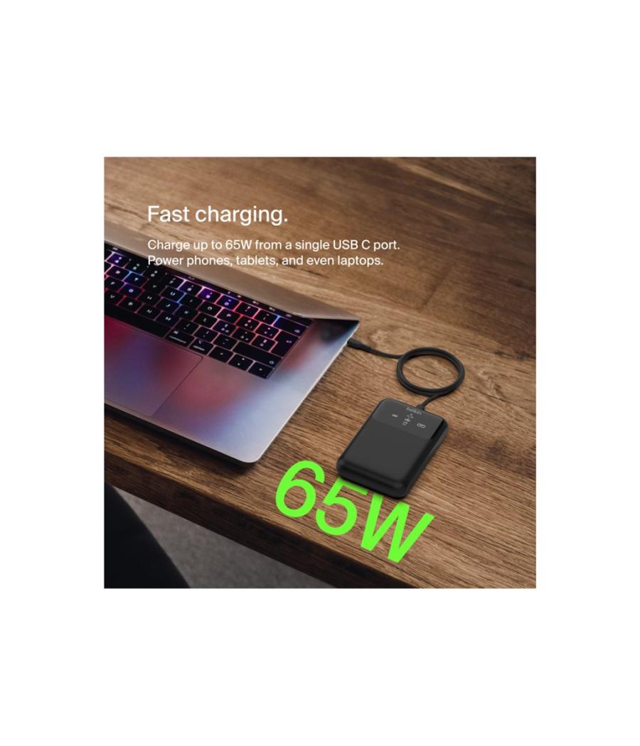 Chargeur secteur avec technologie GaN - Marque : Bluestork - Modèle : PW-NB-65-C-GAN-W - Puissance : 65 W (USB-C) + 18 W (USB-A) - Technologie : GaN (compact et écoénergétique) - Connecteurs : 2 ports (1× USB-C, 1× USB-A) - Compatibilité : PC portables, smartphones, tablettes, appareils photo - Entrée : AC 110–240V ~ 50/60Hz, 1.3A max - Dimensions : 92 × 53 × 35 mm - Poids : 400 g - Longueur câble : 1,8 m - Couleur : Noir.