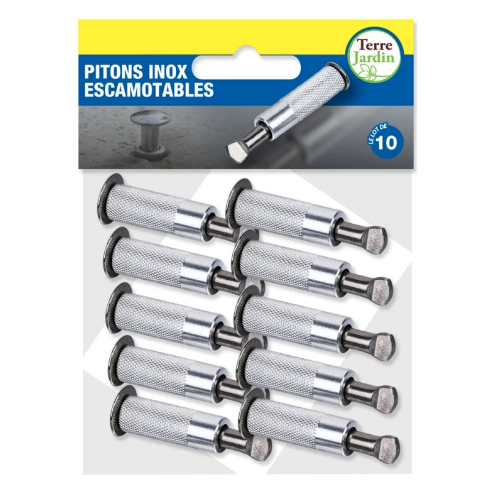 PITONS DOUILLES ESCAMOTABLES TERRE JARDIN EN INOX X10