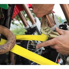 À cliquet avec verrouillage automatique. De qualité professionnelle. Pour tous vos travaux de force, d'attache et de sanglage. Cette sangle d'arrimage à cliquet dispose d'un verrouillage automatique. Dimensions : l. 8 m x l. 50 mm. Matière : polyester. Poids : 2,8 kg environ. Coloris : jaune. 4,5 t max. Normes : gs / tuv.