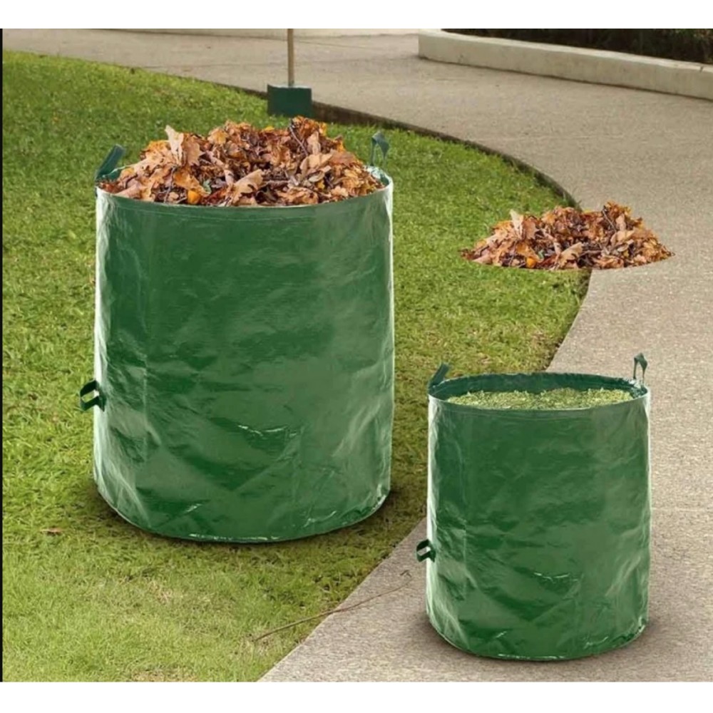 Sac autoportant 70 litres. Dimensions : Ø 40 x h. 60 cm. Matière : polyéthylène 220 g/m². Poids : 0,2 kg environ. Couleur : vert. Contenance : 70 litres. 3 poignées.