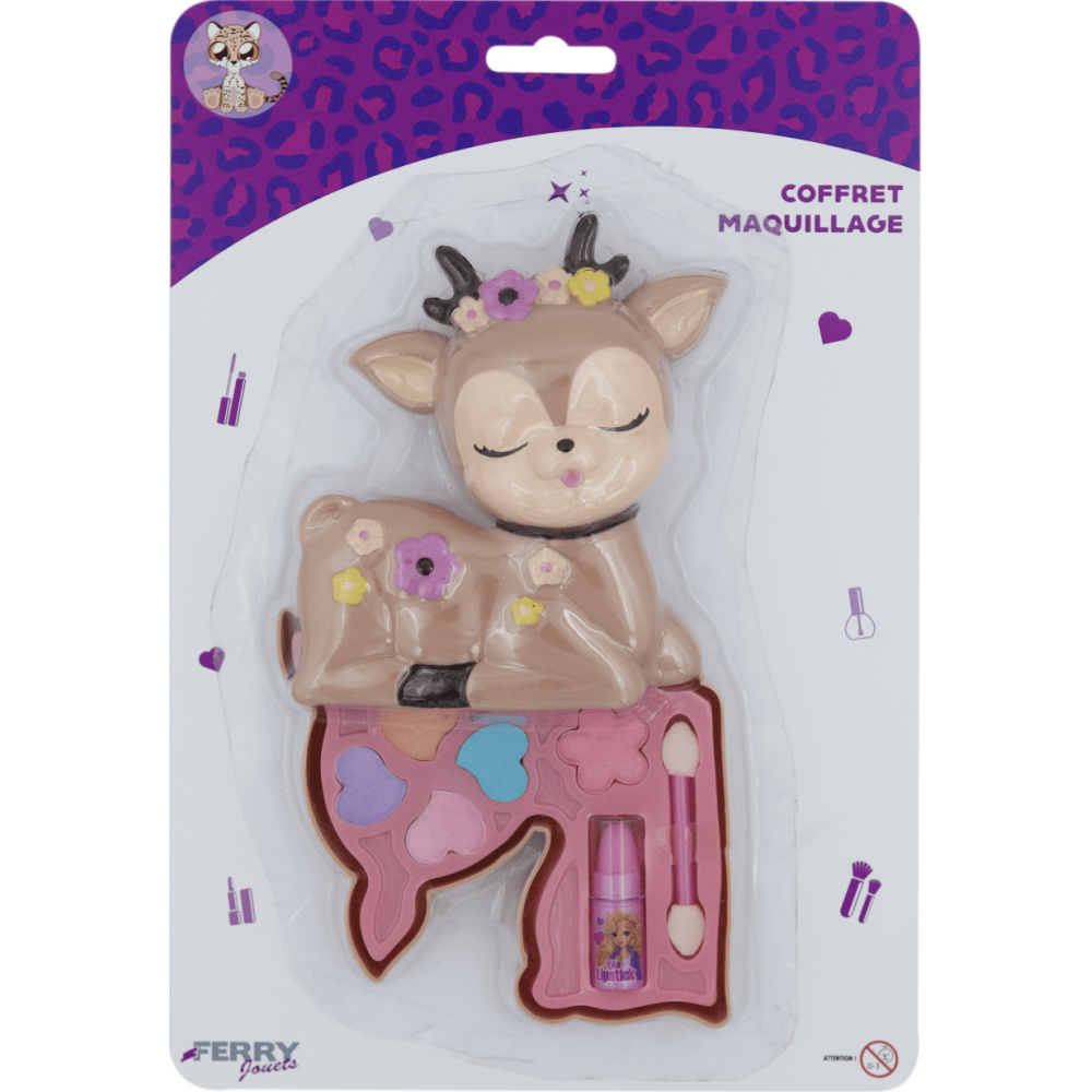 Coffret maquillage FERRY - 7 modèles assortis : biche, bonbon, donut, sirène, baleine, flamant, licorne - Grand format en blister - Contient le nécessaire pour créer différents looks - Couleur : multicolore - Âge recommandé : dès 6 ans - Utilisation du maquillage : à partir de 5 ans, sous surveillance d’un adulte - Ne convient pas aux moins de 3 ans - Fonctionne sans piles - Dimensions : 30 cm (H) x 36 cm (P) x 5 cm (L) - EAN : 3286415001161.