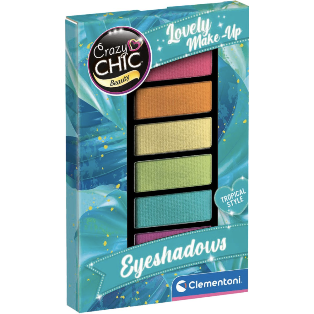 Palette de fards à paupières Crazy Chic - Marque : CLEMENTONI - 6 couleurs estivales lumineuses - Spécialement conçu pour les jeunes amateurs de cosmétiques - Idéale dès 6 ans - Favorise la créativité et la motricité - Fabriqué en plastique - Taille compacte, facile à transporter - EAN : 8005125189083.