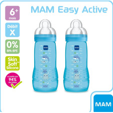 Découvrez le biberon Easy Active de la marque MAM. Ce biberon a spécialement été conçu pour les bébés à partir de 4 mois. Il dispose d'un débit X qui est idéal pour tous les types de boissons. La tétine de ce biberon MAM est entièrement en silicone insoft, facilement acceptée par les bébés et idéale pour la forme de la bouche. Le biberon possède une large ouverture ce qui assure un entretien facile et rapide. Le capuchon est gradué. Ce biberon est particulièrement ergonomique pour permettre à votre bébé de le prendre en main avec une grande aisance.