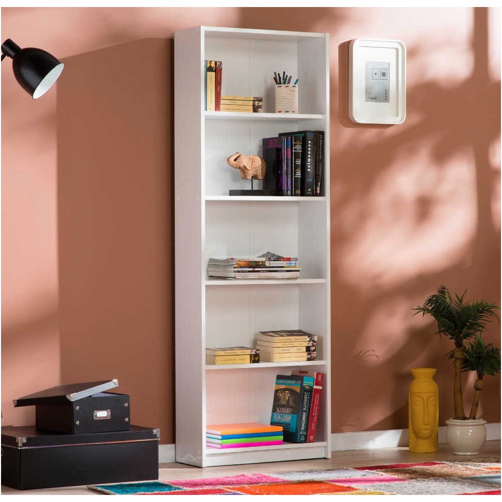 Bibliothèque LARA - Bibliothèque avec 5 étagères - Dimension : 58x170x23 cm - 100% panneau de particules mélaminé - 5 étagères - Design ergonomique - Très facile à monter - Parfait pour les chambres enfants et adolescents - Coloris : blanche.