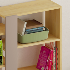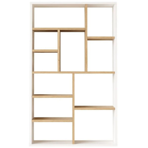 Bibliothèque Axel conçue en bois de chêne et mesurant 80 cm de large, 29 cm de profondeur et 152 cm de haut - Propose 9 étagères de rangement alignées en 2 rangées comportant respectivement 4 et 5 étagères - Affiche un magnifique design en bois clair rehaussé par sa bande gris anthracite qui marque la séparation des 2 rangées - Convenable pour tous types de pièces dans la maison.