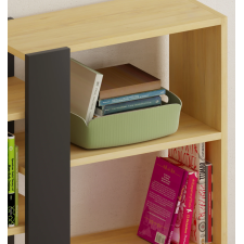Bibliothèque Axel fabriquée avec 2 rangées d'étagères, incluant respectivement 4 et 5 étagères - Fabriquée avec un design fin et attractif incluant des angles droits et des planches bien lisses - Intègre une bande de séparation noir mat au lieu des 2 étagères - S'installe en pose simple dans une chambre, une salle de séjour ou un bureau - Mesure 29 cm de profondeur, 80 cm de large et 152 cm de haut - Peut accueillir des livres, objets de décoration et bien d'autres articles de taille correspondante.