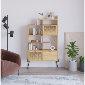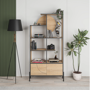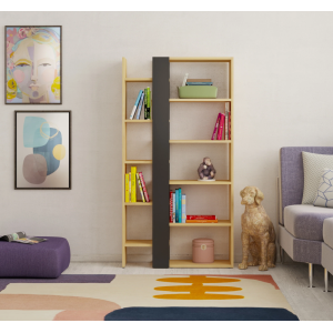 BIBLIOTHEQUE LOFTY 5 CASES 17238 BOIS CLAIR ET GRIS