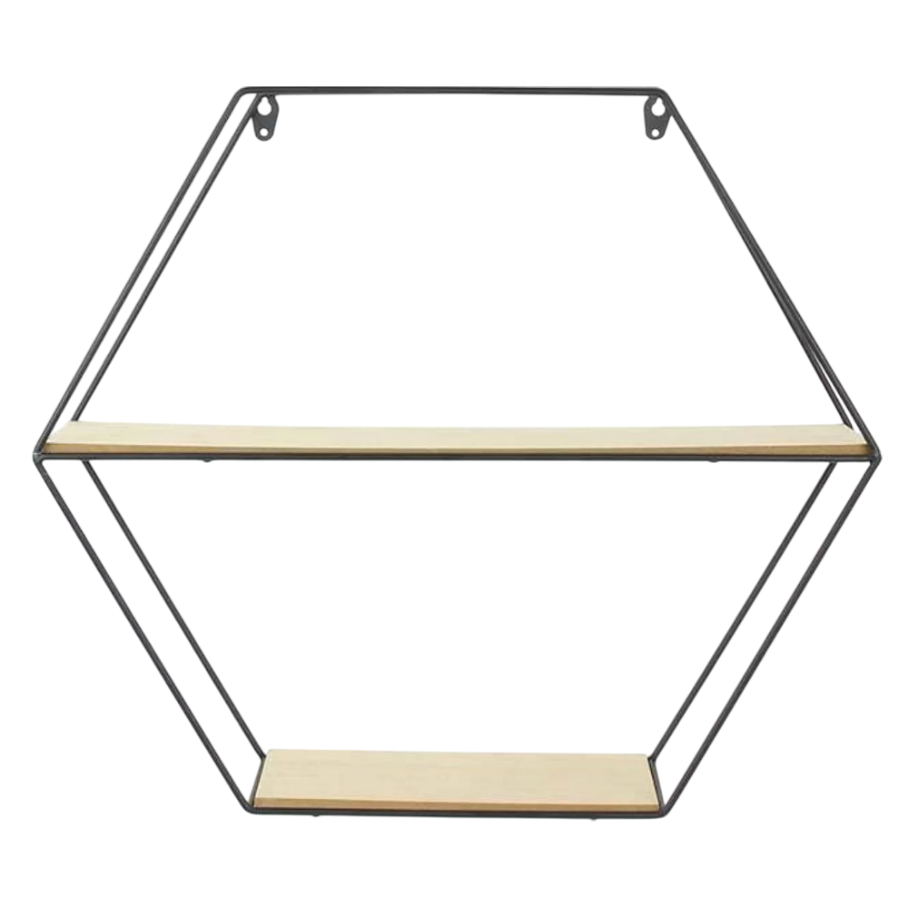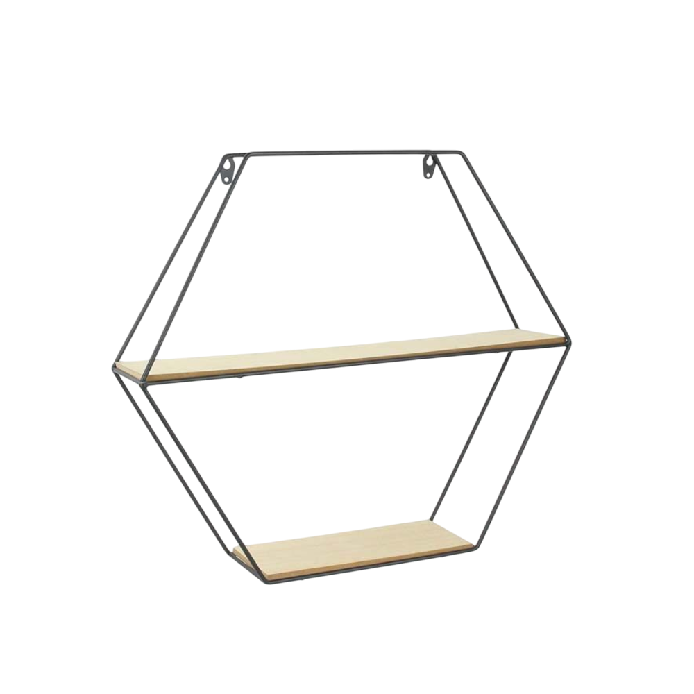 ETAGERE HEXAGONALE EN BOIS ET METAL NOIR