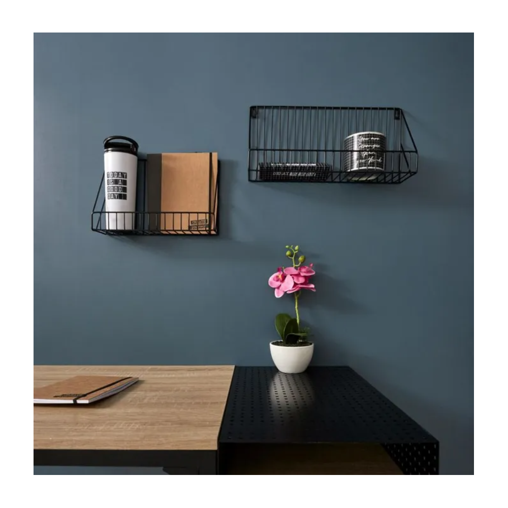 Lot de 2 étagères murales « filaire » 40 cm noir — idéal pour structurer votre espace avec légèreté et style. Fabriquées en métal noir, elles mesurent 40 × 20 × 10,8 cm chacune et pèsent ensemble 0,795 kg. Discrètes et modernes, elles s’intègrent aisément à tout décor. Parfaites pour exposer objets décoratifs ou livres légers, elles offrent une solution murale pratique et esthétique.