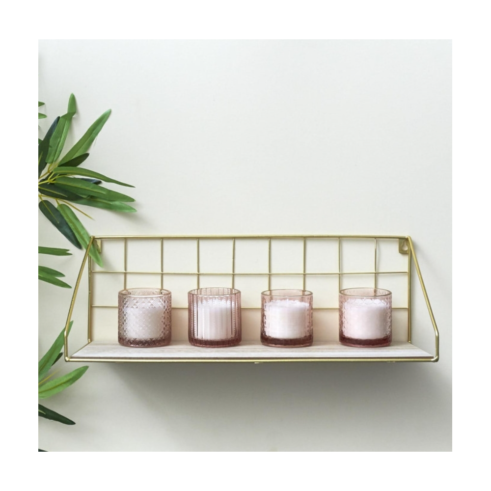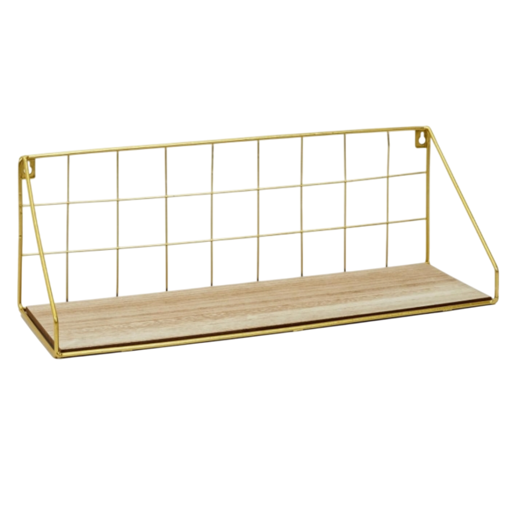 ETAGERE MURALE RECTANGLE EN METAL DOREE