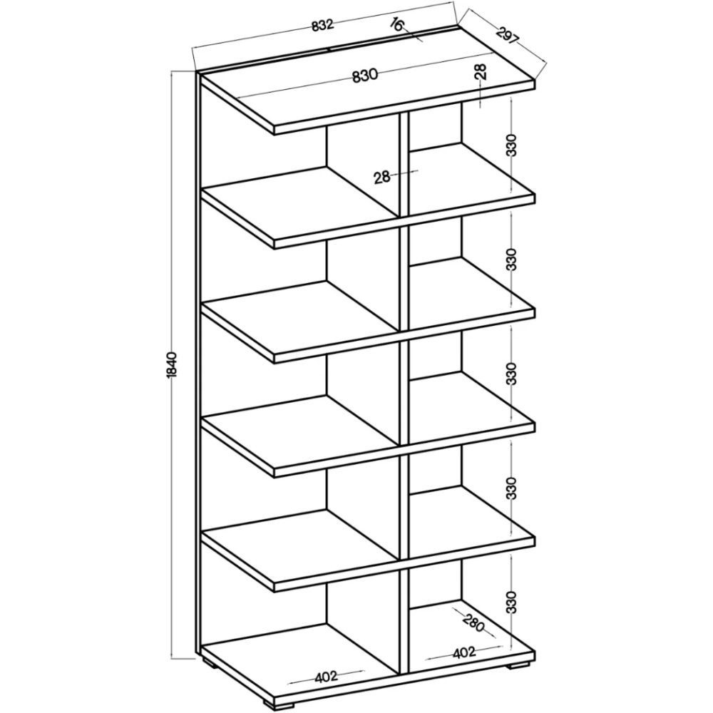 Bibliothèque 1219 - Panneau de particules 100 % mélaminé - Épaisseur : 18 mm - Largeur : 80 cm Hauteur : 150,5 cm Profondeur : 29 cm - Hauteur des étagères : 28 cm - Nombreuses étagères.