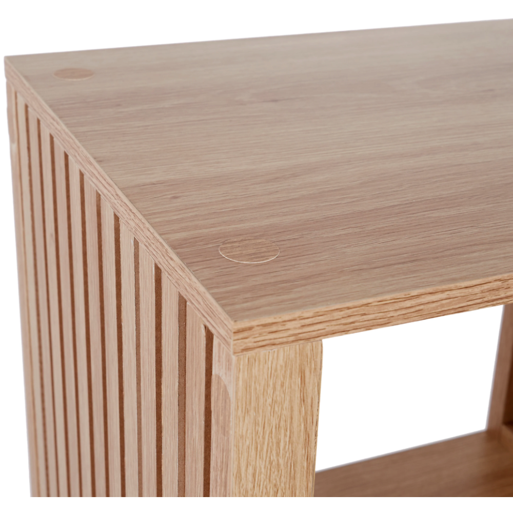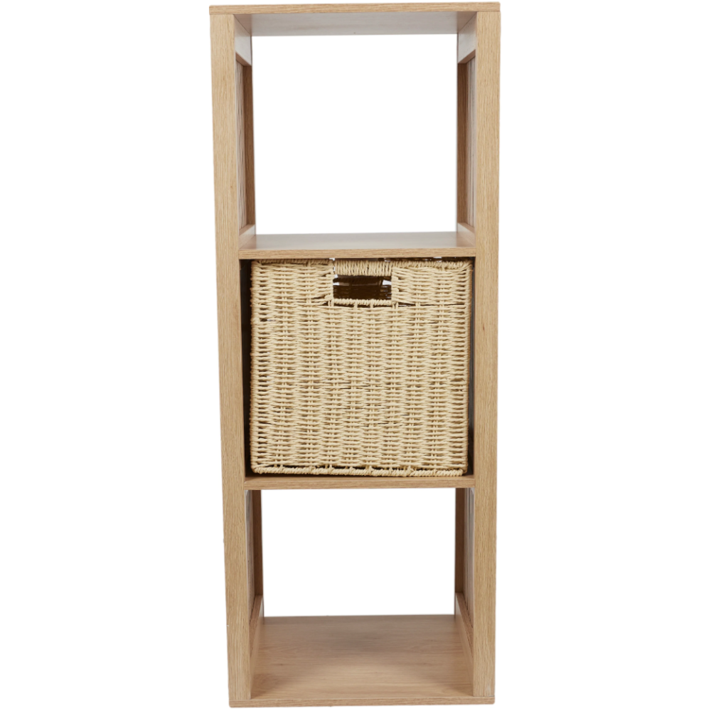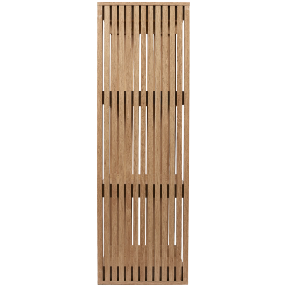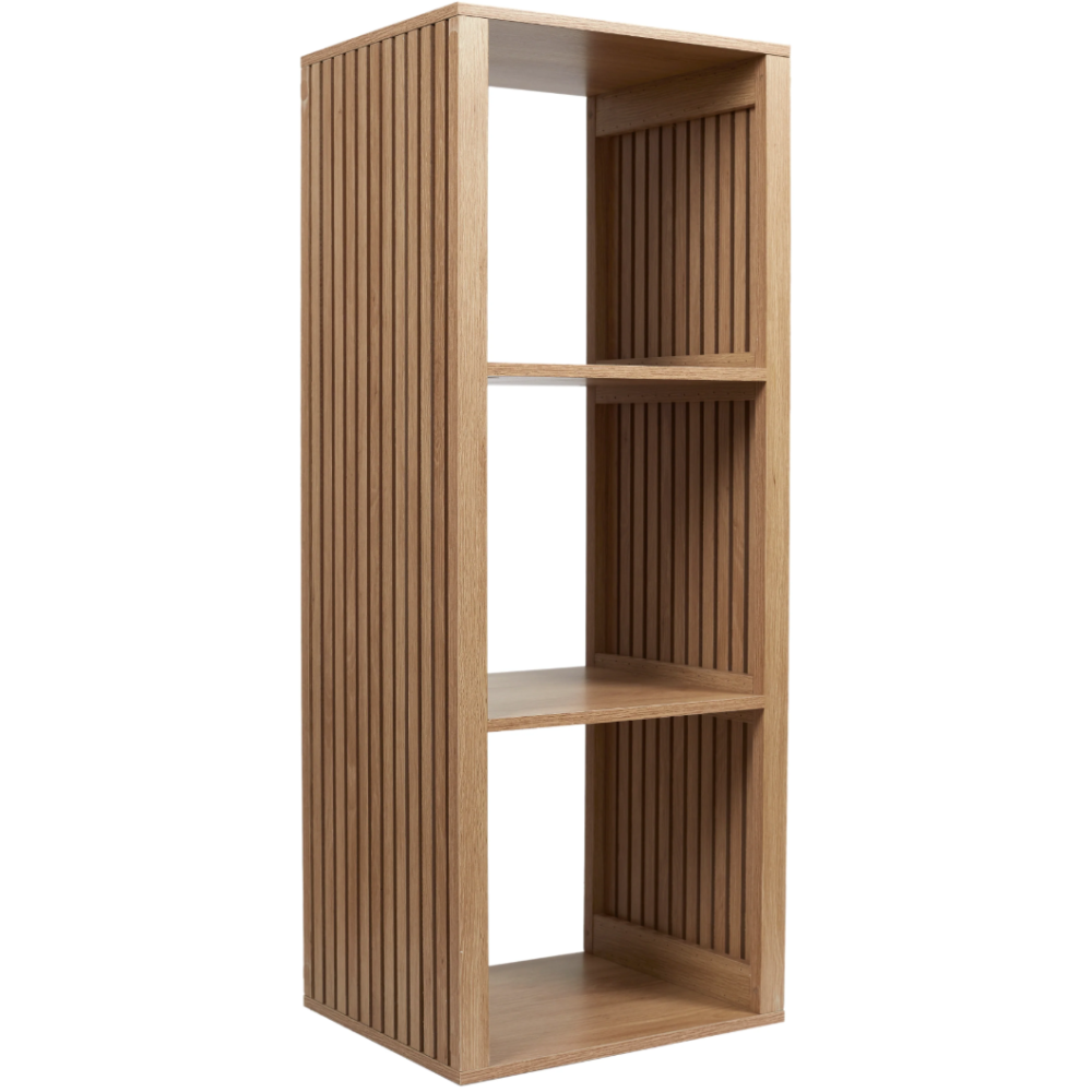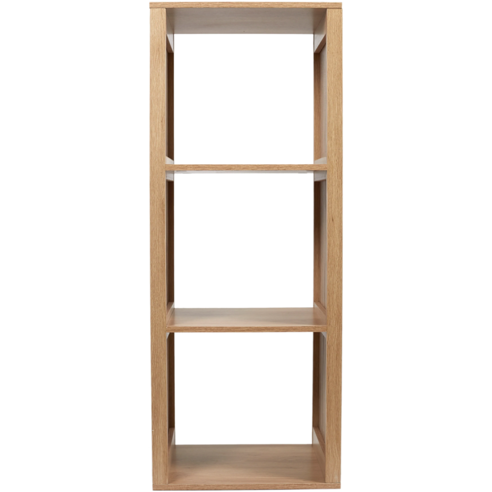 Bibliothèque conçue avec une structure en bois et panneau de particules - Propose une solution de rangement pratique pour les livres et objets divers grâce à ses 3 grandes cases ouvertes - Affiche des finitions nettes et une texture à rainures qui ressort toute la beauté du bois - Fabriquée dans un design original incluant des flancs en forme de cloisons - Accueille des objets de décoration ou des bibelots divers rehaussant le décor intérieur de la pièce - Dimensions de la bibliothèque : 38.5 cm de long, 32 cm de large et 99 cm de haut.