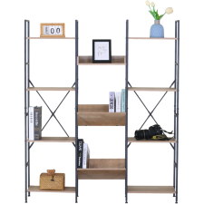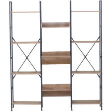 Bibliothèque proposant jusqu’à 11 espaces de rangement - Convient pour classer de manière optimale des livres, des souvenirs et des accessoires divers - Dispose d’une conception de haute qualité avec 4 grands supports métalliques noirs et des étagères en panneaux de particules avec finition mélaminée - A installer en pose libre dans une pièce de vie - Inclut des espaces creux et plats à exploiter à volonté selon le type d’accessoires à disposer - Mesure exactement 125 cm de large, 27 cm de profondeur et 150 cm de haut.