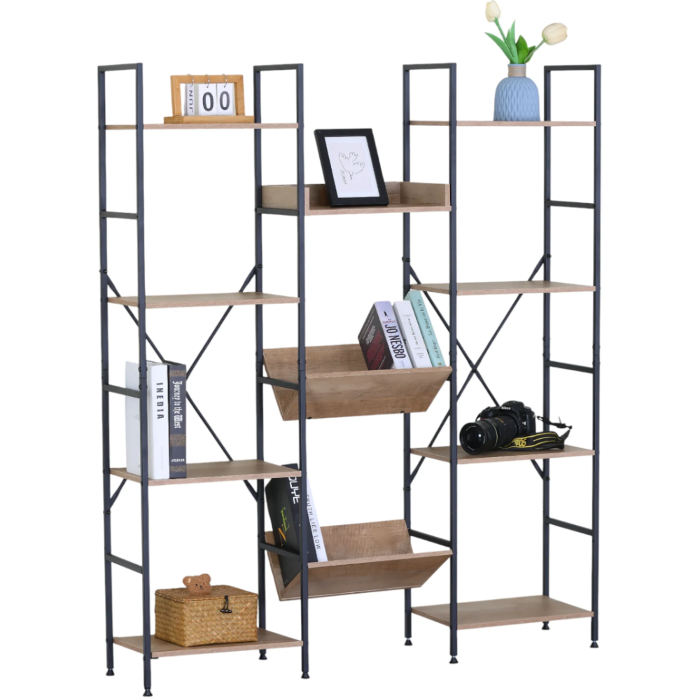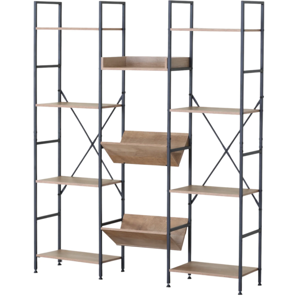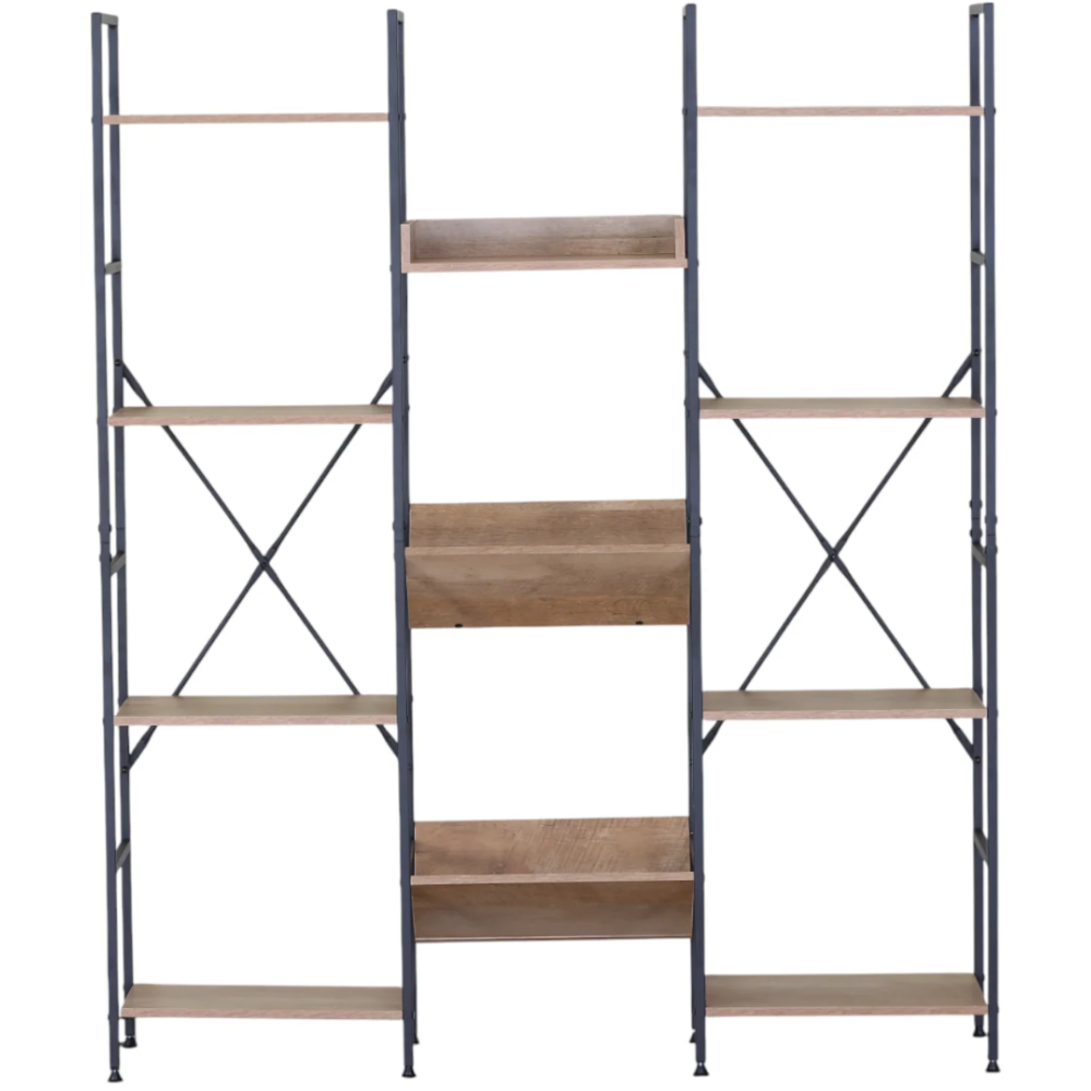 Bibliothèque dotée de 5 étagères conçues avec une structure en panneaux de particules avec finition mélaminée - Convient pour le rangement d’outils et accessoires divers - Offre la possibilité de ranger les effets par catégories - Mensurations de la bibliothèque : 58,6 cm de long, 23,5 cm de profondeur et 144 cm de haut - Affiche un design ouvert qui permet un rangement polyvalent et une accessibilité facile aux accessoires - Soutenue par une structure en métal de couleur noire qui occupe toute la hauteur du meuble - Garantit solidité et durabilité grâce à ses bons matériaux de conception.