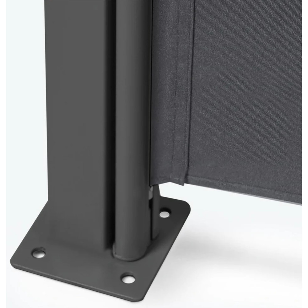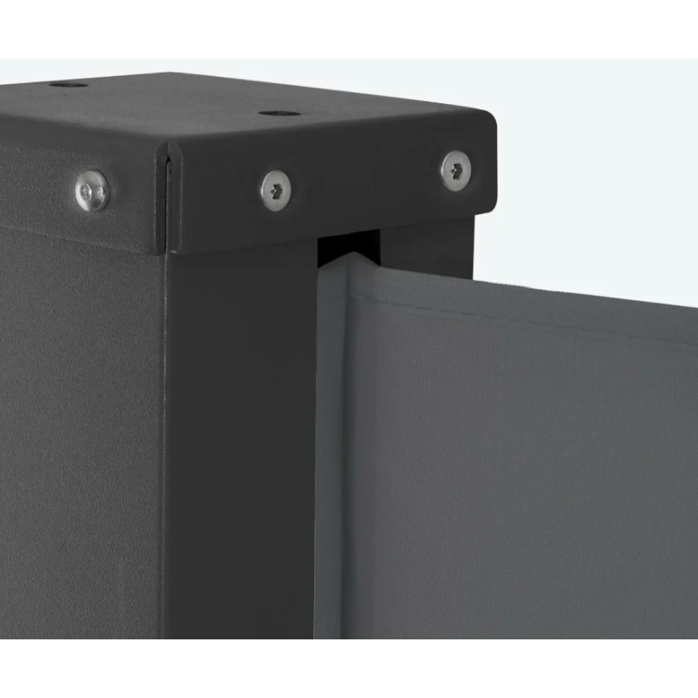 Détails dimensions : - Poteau enrouleur : H. 180 cm. - Poteau : H. 90 cm. Toile anti-UV. Grammage toile : 180 g/m². Coloris: anthracite.