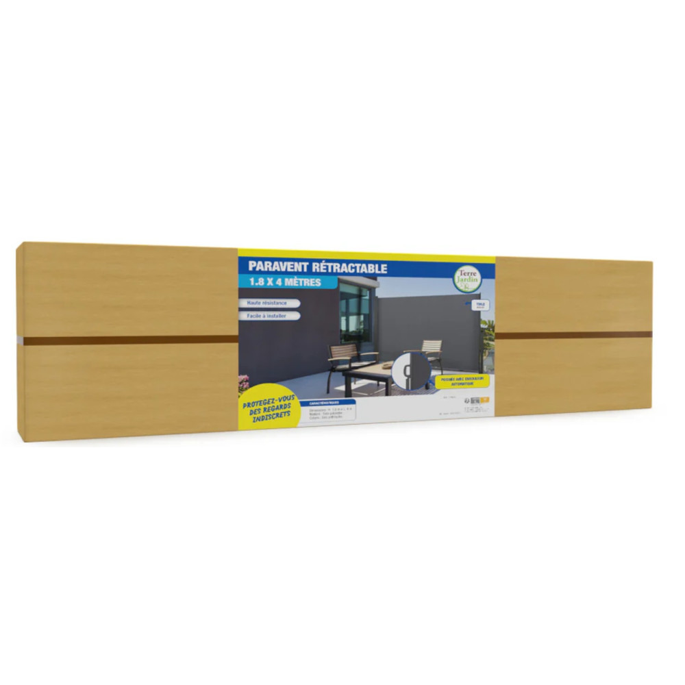 S’enroule et se déroule en un seul geste ! Voici la solution idéale pour gagner un peu d'intimité dans votre jardin ou sur votre terrasse ! Ce paravent rétractable vous protègera des regards indiscrets, du soleil et du vent en un rien de temps. Il vous suffira de le fixer au mur (visserie incluse), vous pourrez ensuite l'enrouler et le dérouler à votre convenance !Son design moderne trouvera forcement sa place sur votre terrasse.