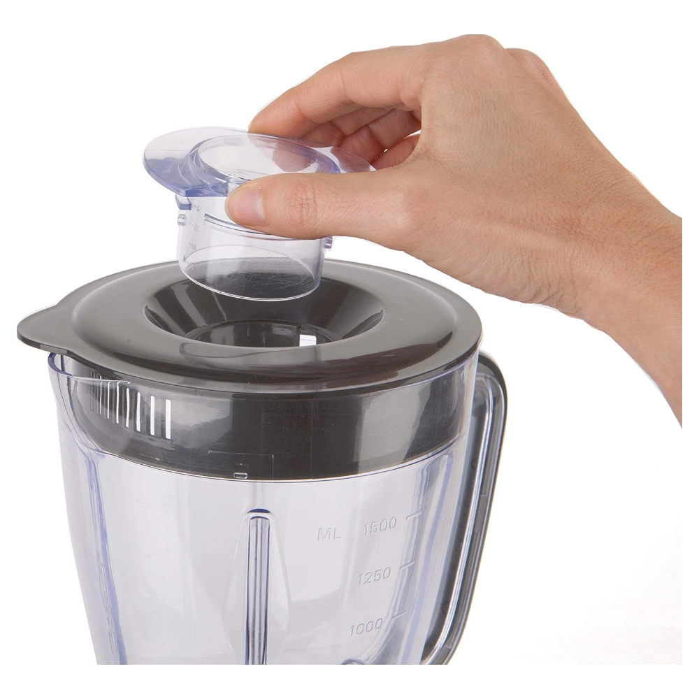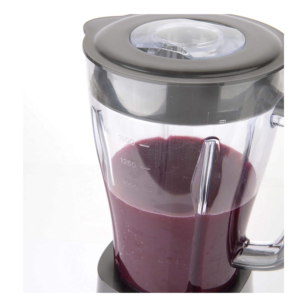 | Caractéristiques complémentaires | Couvercle avec tasse à mesurer et filtre intégré Mécanisme de fermeture de la base pour une meilleure stabilité et sécurité Base antidérapante Broyage de glaçons pour smoothie Poignée ergonomique et bec verseur |