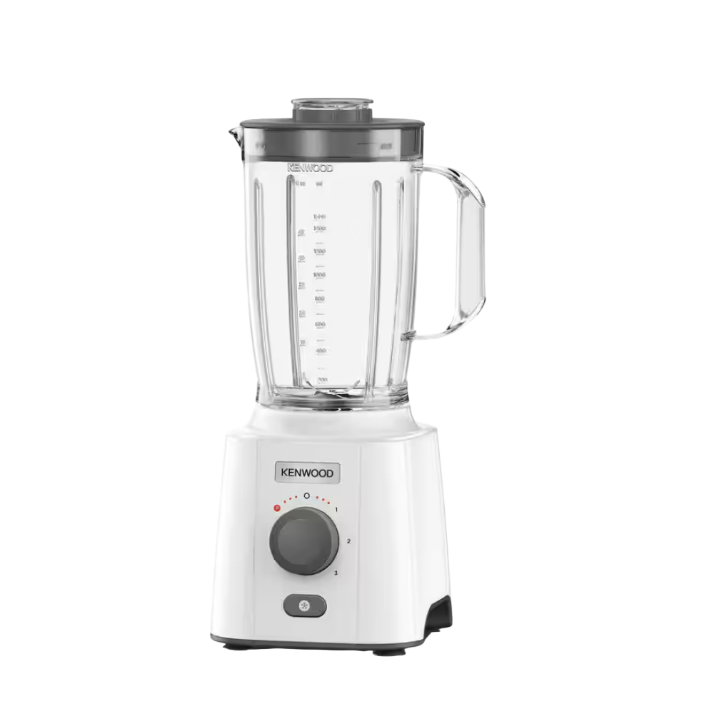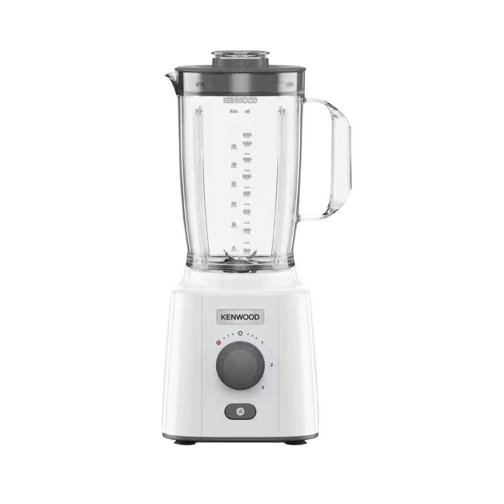 Le blender Kenwood BLP41.A0WH est un mixeur polyvalent et pratique pour toute cuisine. Avec une puissance de 650 W, il est capable de préparer facilement smoothies, soupes, sauces ou boissons glacées. Son bol plastique de 2 L gradué, équipé d’une poignée ergonomique et d’un bec verseur, facilite le dosage et le service. Il propose 3 vitesses réglables et une fonction Pulse pour un contrôle optimal des textures, ainsi qu’une fonction glace pilée pour des boissons rafraîchissantes. Les lames en acier inoxydable amovibles assurent un mixage efficace, tandis que les pièces compatibles lave-vaisselle simplifient l’entretien. Stable et sécurisé grâce à ses pieds antidérapants, ce blender combine performance, confort d’utilisation et grande capacité pour les préparations familiales.