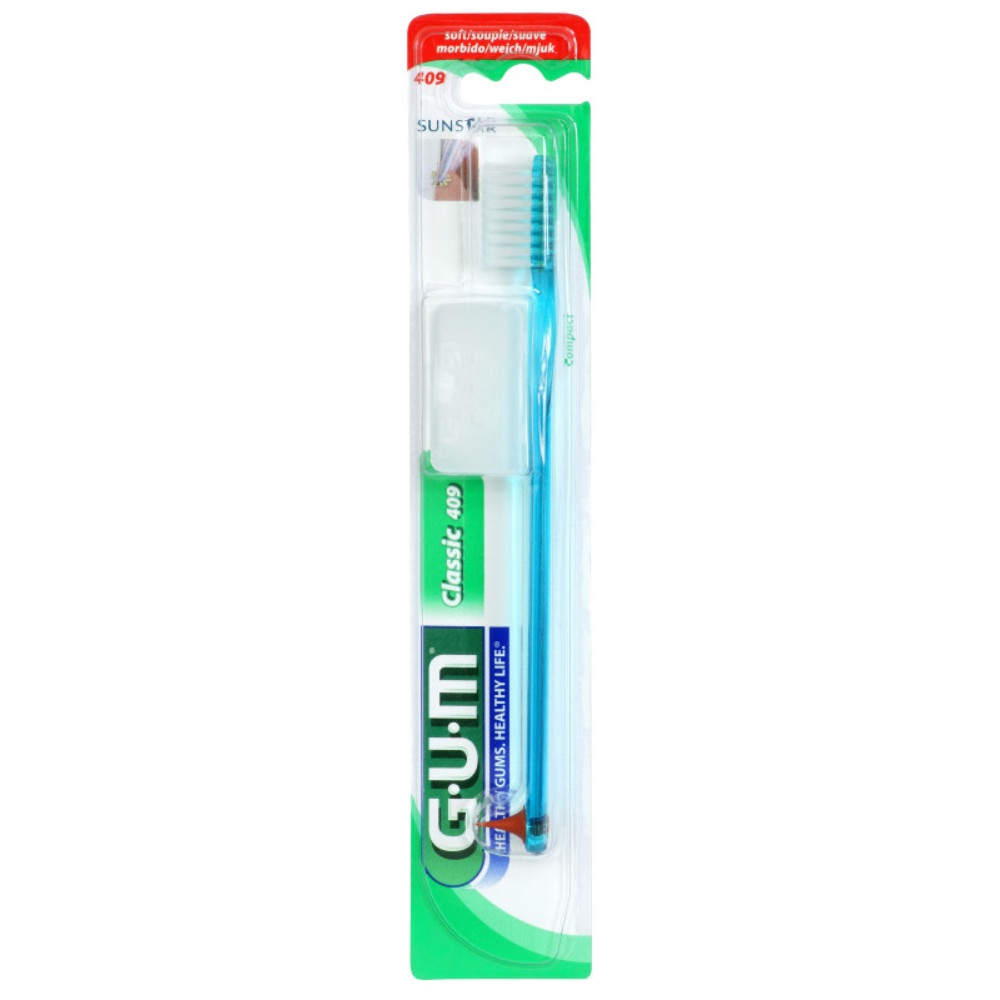 Brosse à dents Gum Classic 409 dotée de 4 rangs de brins - Permet une élimination efficace de la plaque dentaire et réduit l'inflammation gingivale - Aide à protéger les dents et les gencives pour une bonne santé bucco-dentaire - Facilite l'accès aux zones difficiles d'accès - Munie d'un stimulateur gingival en caoutchouc, sans latex, conçu pour masser les gencives et nettoyer en douceur le sillon gingival.