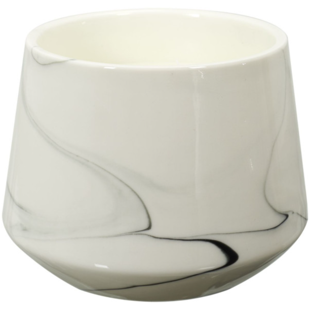 Bougie parfumée - Informations techniques : dimensions : l. 10,5 x l. 13,5 x h. 13,5 cm - Matières : paraffine & céramique - Spécificités : pratique & déco bougie parfumée avec pot en céramique design motif marbré forme ronde senteur : orchidée blanche - Durée de combustion : 35 h - Poids : 0,92 kg -Couleur : blanc.