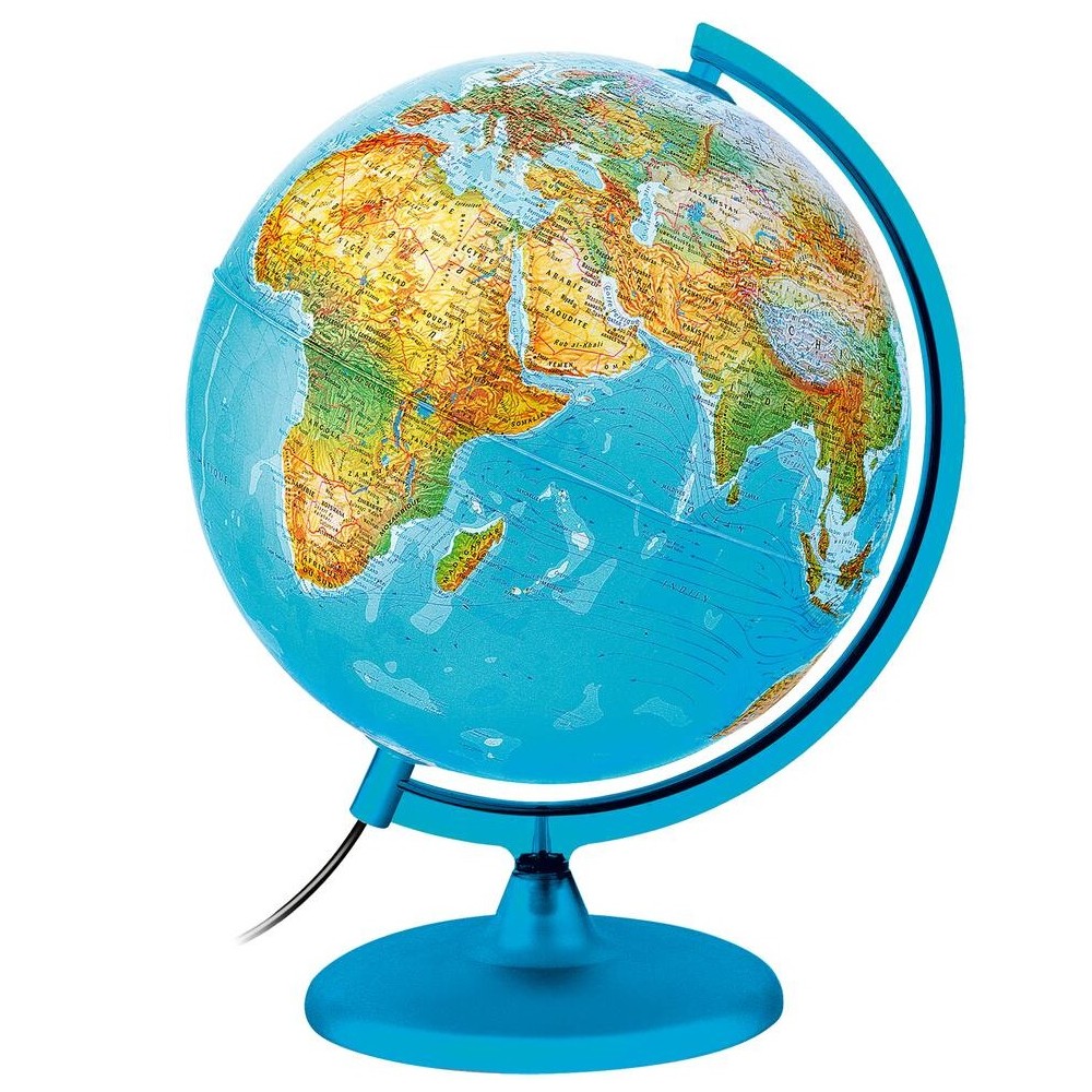 Globe géographique lumineux pour observer la géographie physique (éteint) et la géographie politique (allumé). Cartographie facile à lire. Pied stable en plastique. Méridien robuste en plastique. Branchement sur secteur. Ampoule fournie. A utiliser sous la surveillance d'un adulte. Ce produit n'est pas un jouet.