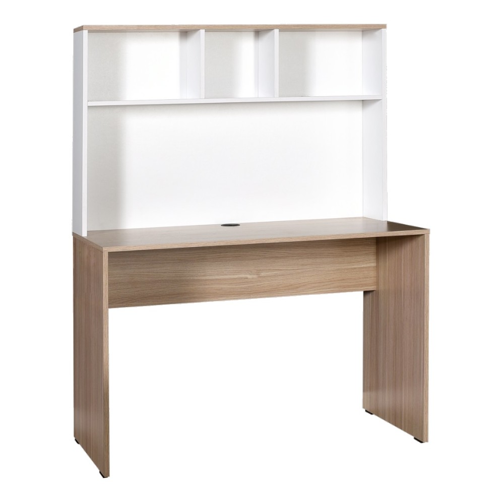 Bureau TORI bois naturel et blanc laqué - 110 x 149 x 52 cm - Coloris chêne italien - Grâce à sa conception ergonomique et élégante, il peut être utilisé à la fois comme bureau de travail et ordinateur - Étagères élégantes et utiles harmonie de couleur blanche avec la texture du bois naturel et la brillance de la laque.