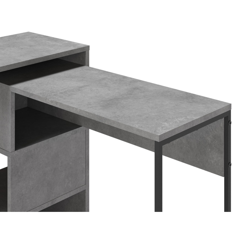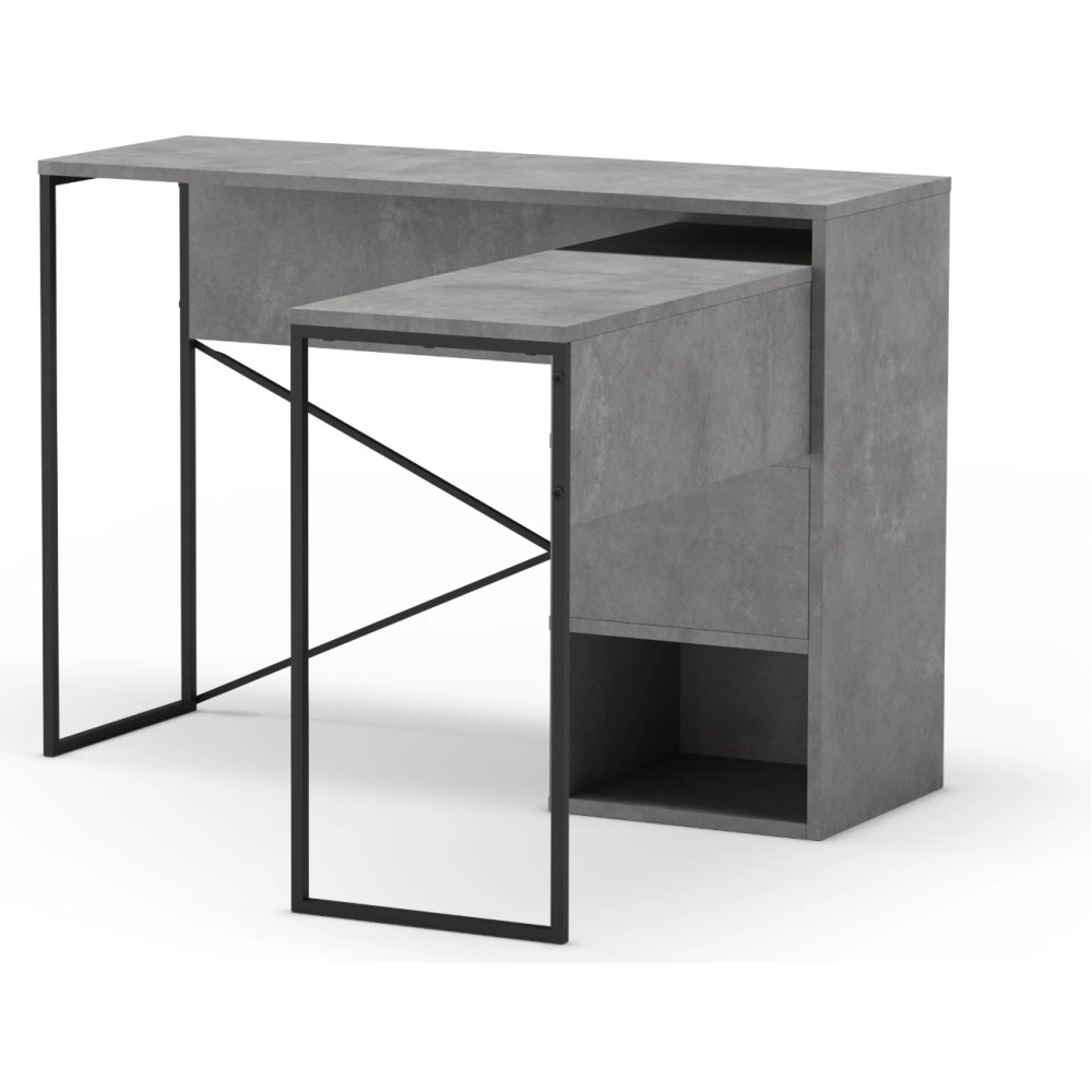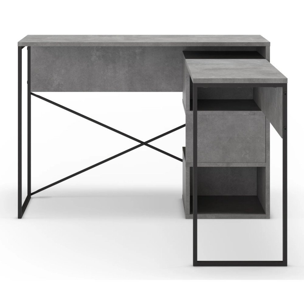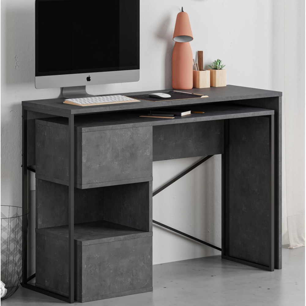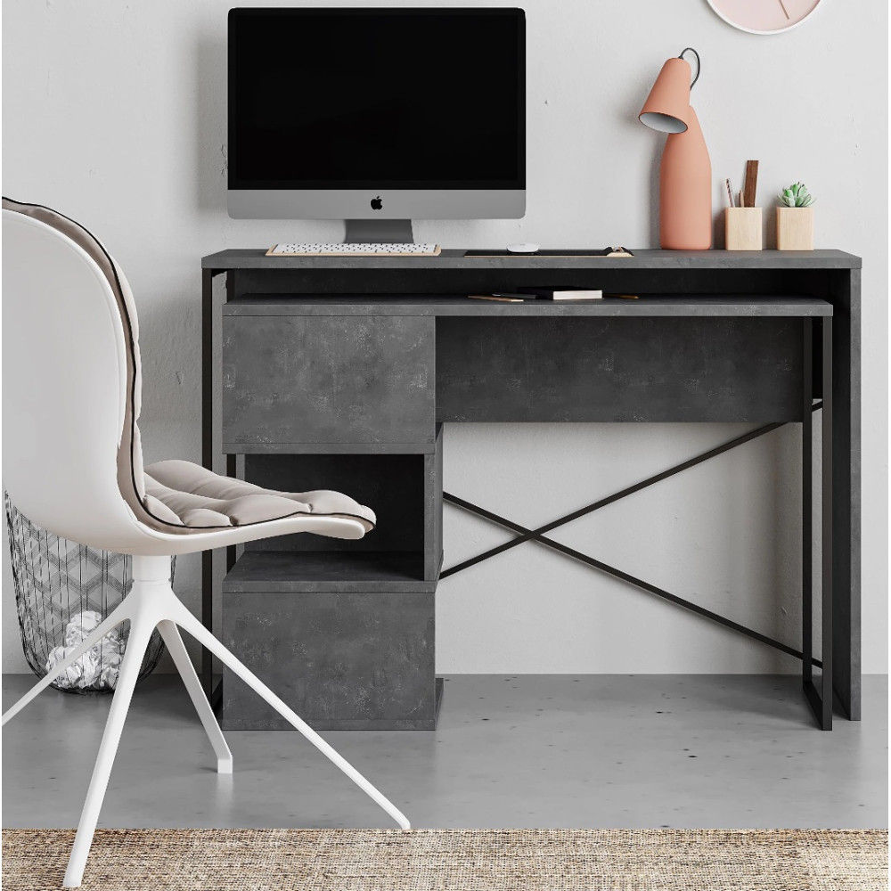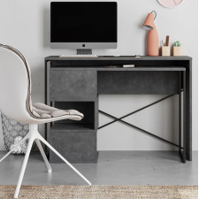 Bureau Tiago avec niches de rangement - Coloris : effet béton - Dimensions : 110 x 77 x 102,2 cm.