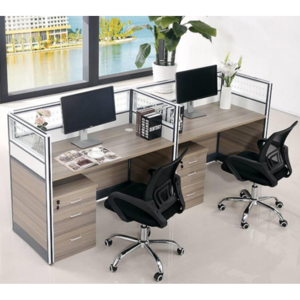 Bureau double comptoir efficace pour aménager des espaces de travail partagés - Conçu pour optimiser l'espace en offrant un environnement semi-privé grâce aux cloisons - Idéal pour les espaces de travail ouverts - Equipé d'un caisson de rangement avec tiroirs verrouillables - Design moderne qui s'intègre facilement dans n'importe quel bureau - Dimensions: 2400x600x1100.