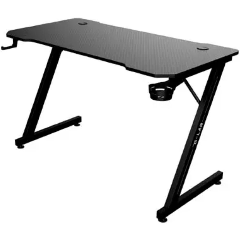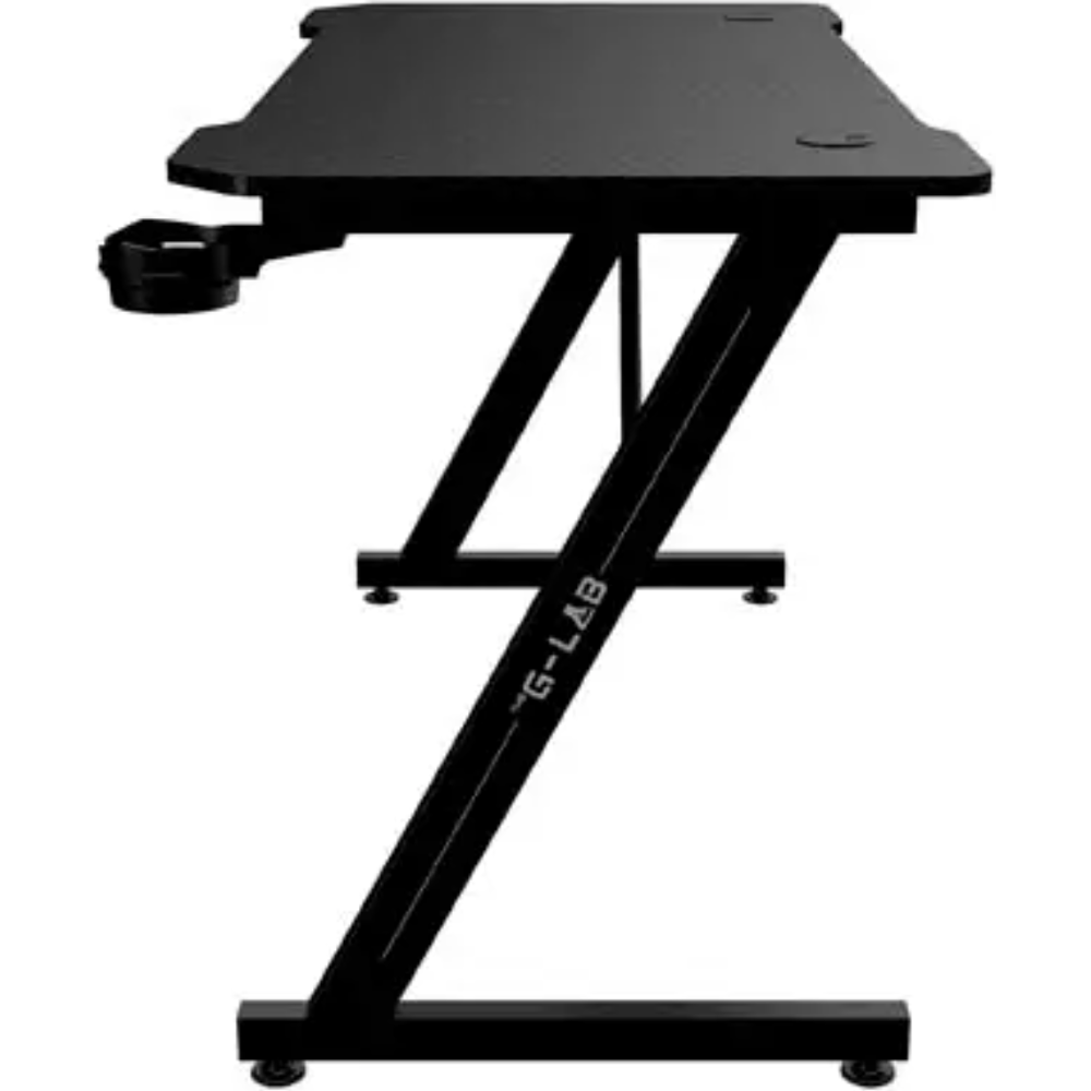 Bureau gaming - Marque : THE G-LAB - Modèle : K-Desk Yttrium - Dimensions : 120 x 60 x 75 cm - Épaisseur du plateau : 18 mm - Structure en acier renforcé - Plateau avec finition effet fibre de carbone - Pieds ajustables en hauteur - 2 emplacements pour le passage de câbles - Support casque intégré - Porte-gobelet inclus - Montage facile et rapide - Espace adapté aux setups double écran - Conçu pour le confort et la robustesse lors de longues sessions de jeu - Contenu du colis : 1 bureau, 1 kit de montage, 1 manuel utilisateur - EAN : 3760162068061.