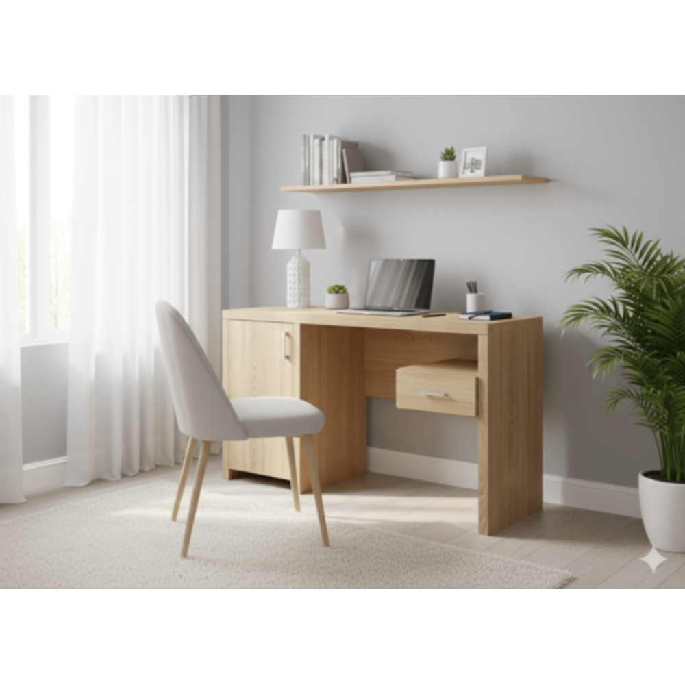 Bureau A842 - Design contemporain allie fonctionnalité et élégance - 3 tiroirs - Sa finition effet bois naturel apporte une touche chaleureuse et s’intègre facilement dans un bureau, une chambre ou un espace de télétravail. Il dispose d’un large plateau idéal pour accueillir ordinateur, documents et accessoires. Sur le côté, un caisson composé de trois tiroirs et d’une niche ouverte offre un rangement pratique pour organiser vos fournitures. Stable et robuste, ce bureau est parfait pour travailler confortablement au quotidien.
