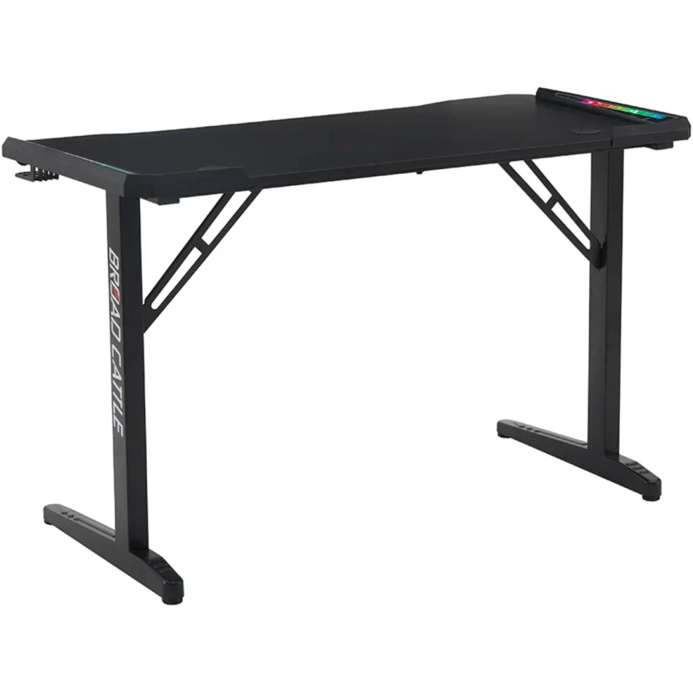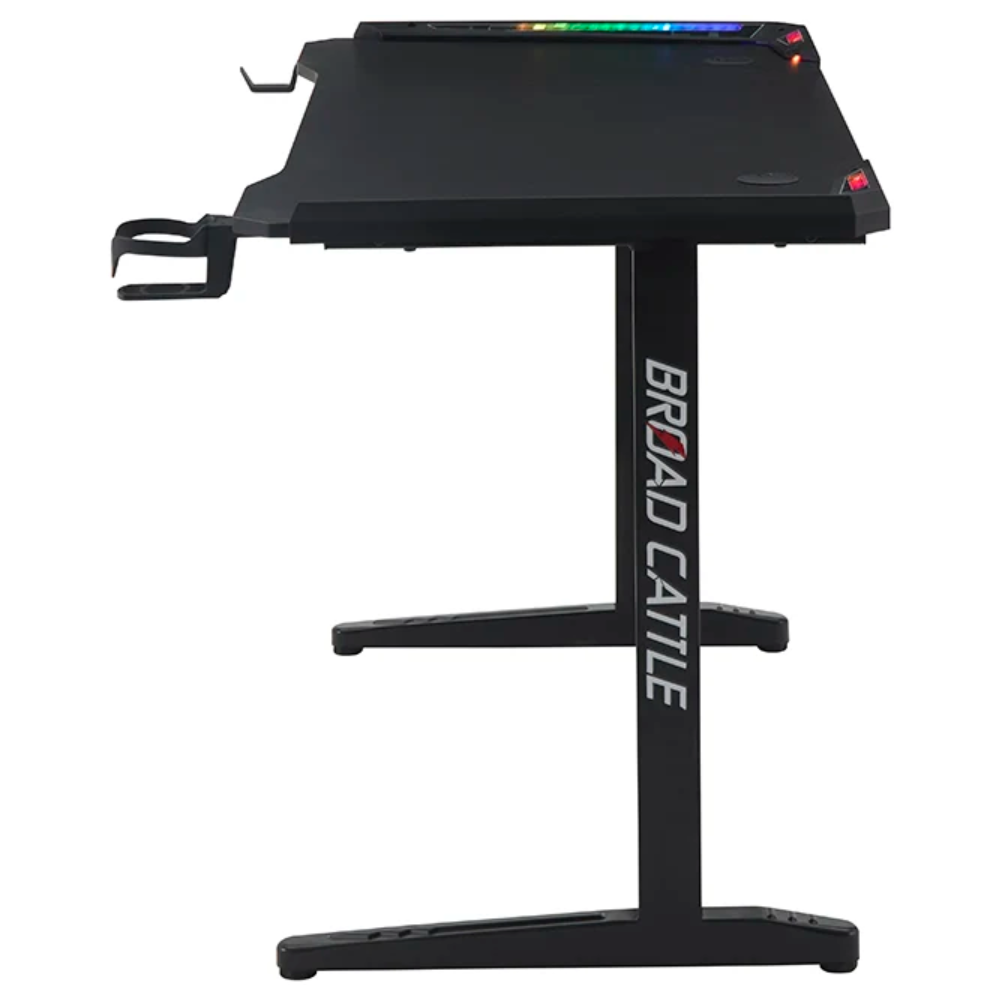 Ce bureau gaming LED T-01 RGB est conçu pour offrir une expérience immersive et un confort optimal. Sa structure en acier noir garantit robustesse et stabilité, tandis que son plateau en panneau de particules mélaminé avec surface antidérapante assure durabilité et maintien des équipements. Avec ses dimensions de 120 x 60 x 75 cm, il offre un espace idéal pour un setup complet. Équipé d’un éclairage RGB USB personnalisable, d’un support casque et d’un porte-gobelet, il allie praticité et style pour un environnement de jeu moderne et organisé.