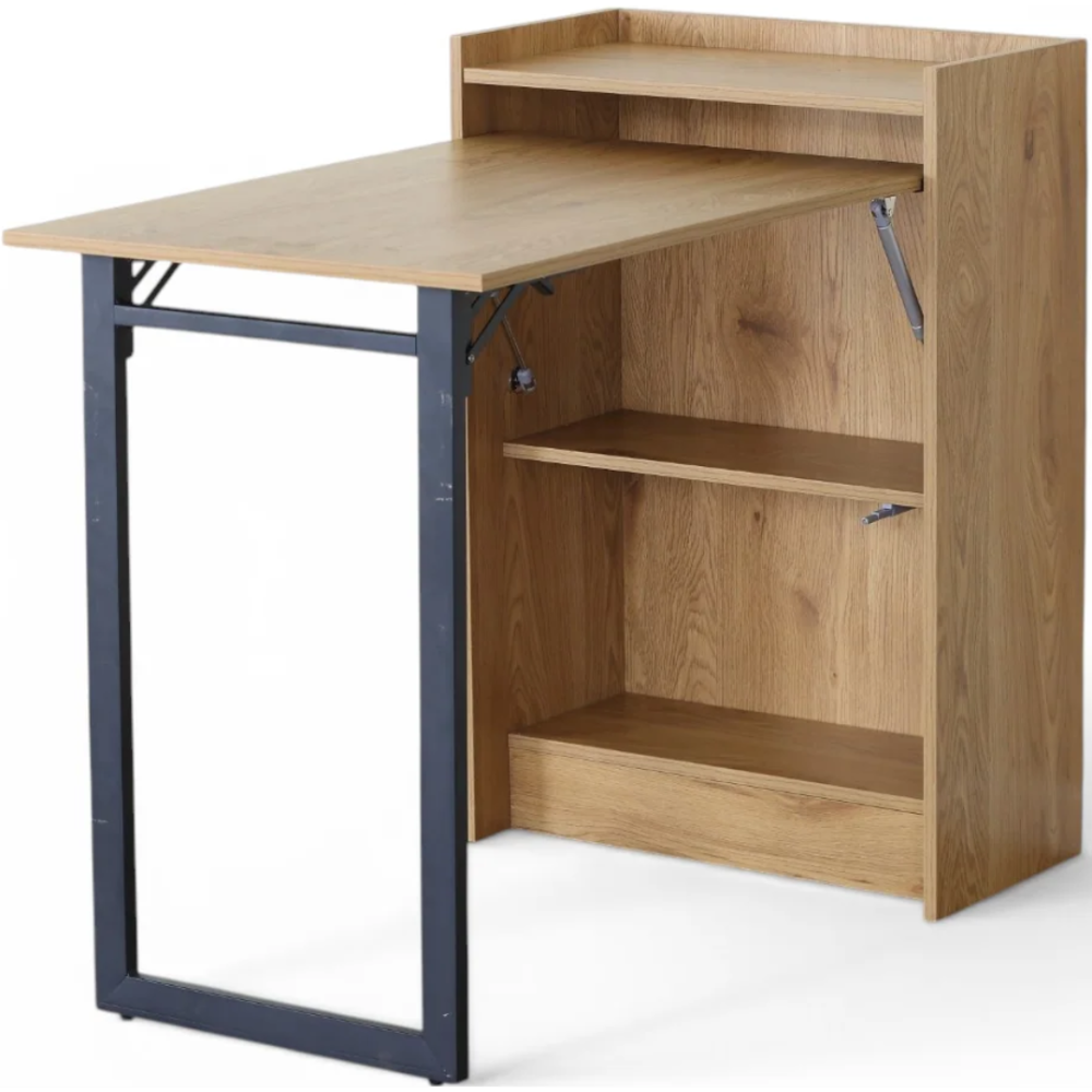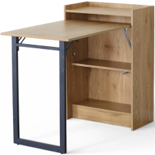 Bureau conçu avec la fonction pliable qui permet de replier une partie de sa conception pour un gain de place - Dispose de 2 étagères pratiques pour le rangement de livres ou la disposition d’objets décoratifs - Mesure 102 cm de large, 58 cm de profondeur et 85,5 cm de haut - Intègre une aile pliante dotée d’un pied métallique en forme rectangulaire verticale avec revêtement en poudre et d’une planche à effet bois - Fabriqué avec une structure en panneau de particules MDF avec finition mélaminée.