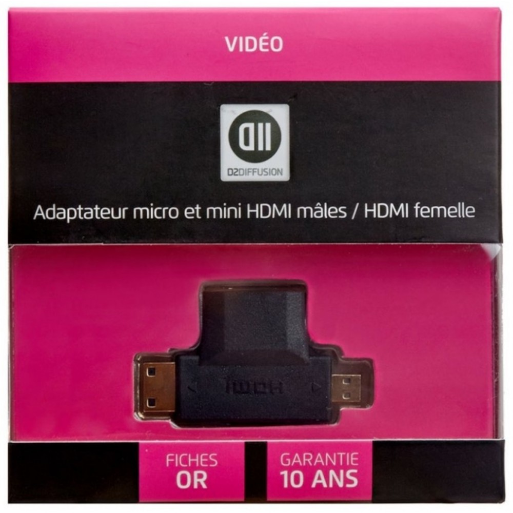 ADAPTATEUR D2 DIFFUSION 2 EN 1 HDMI MICRO HDMI + MINI HDMI/M HDMI/F OR