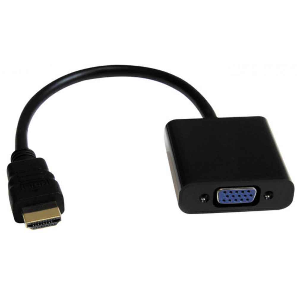 Convertisseur VGA vers HDMI + audio sous forme de cordon - Résolution max 1080p (la résolution d'entrée sera celle de sortie ) - Audio stéréo 2.0/2.1 - Alimentation par USB - Connectique : VGA mâle Audio : jack 3.5mm mâle (longueur 60 cm côté VGA). Un adaptateur jack 3.5mm / 2 x RCA blanc / rouge est fourni avec le cordon (longueur 30cm) - Alimentation : USB A mâle ( longueur 60cm côté VGA ) - HDMI type A mâle - Connecteurs dorés.