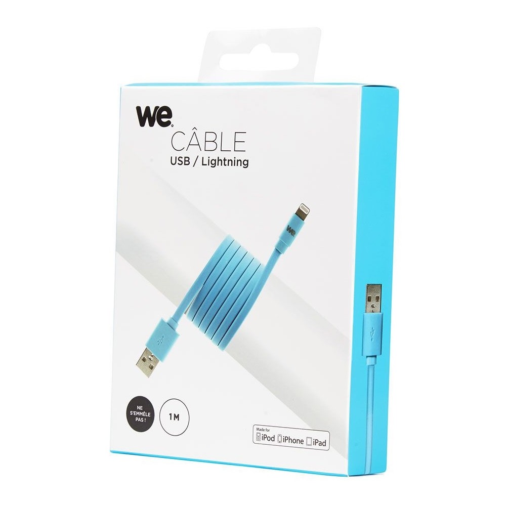 | Nom du produit | WE Câble USB Apple plat - 1 mètre - Silicone - Ble |
