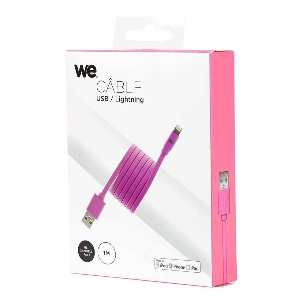 Ce câble plat WE USB/Lightning vous permet de brancher vos appareils Apple avec un port Lightning - Il permet de charger et synchroniser vos appareils.