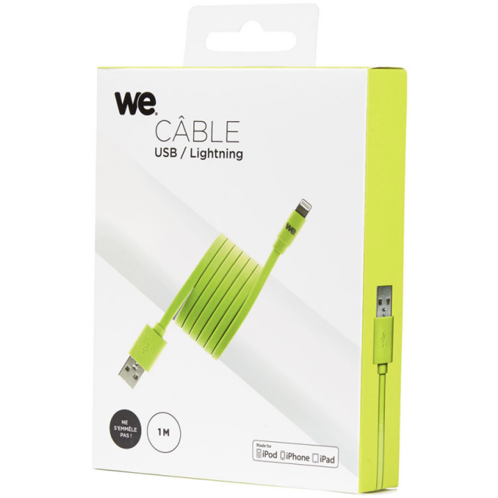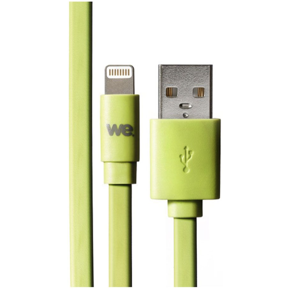 Câble USB/Lightning WE WEUSBLIGHTPLAT100VE pour appareils Apple - Marque : WE - Taille : 1 mètre - Coloris : Vert - Connectiques : USB - Matière : Silicone - Type de produit : Connectique.