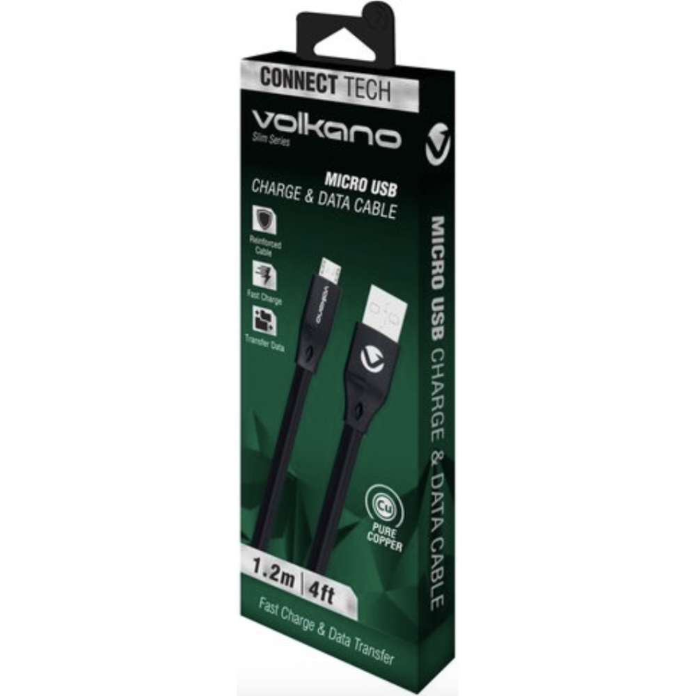 Câble Volkano Slim Micro USB – 1.2m (Noir) - Référence :VK 20082-BK - Marque : Volkano - Longueur : 1,2 mètre - Type de connecteur : Micro USB - Couleur : Noir - Design fin et compact, parfait pour une utilisation quotidienne ou en déplacement - Compatible avec smartphones, tablettes, appareils Android et autres dispositifs dotés d’un port Micro USB - Matériau durable, conçu pour résister aux torsions et à l'usure - Permet la recharge et la synchronisation de données avec une vitesse fiable - EAN : 6009545425488.