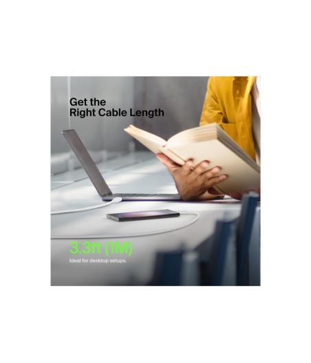 Charge rapide jusqu'à 240 W pour les ordinateurs portables, tablettes et smartphones - Recharge rapide d'un MacBook Pro 14” de zéro à 50 % en 31 minutes - Câble doté de deux puces électroniques et d'une fonction de sécurité anti-surchauffe pour une alimentation électrique sécurisée - Connecteurs durables en aluminium anodisé - Revêtement en nylon doublement tressé testé pour résister à plus de 30 000 flexions - Câble certifié USB-IF et conforme USB 2.0 - Compatibilité universelle avec MacBook, Chromebook, iPad et une large gamme d'autres appareils USB-C - Puissance nominale: 48 V / 5 A, 240 W - Longueur du câble intégré 2M - Câble à gaine tressée en nylon.