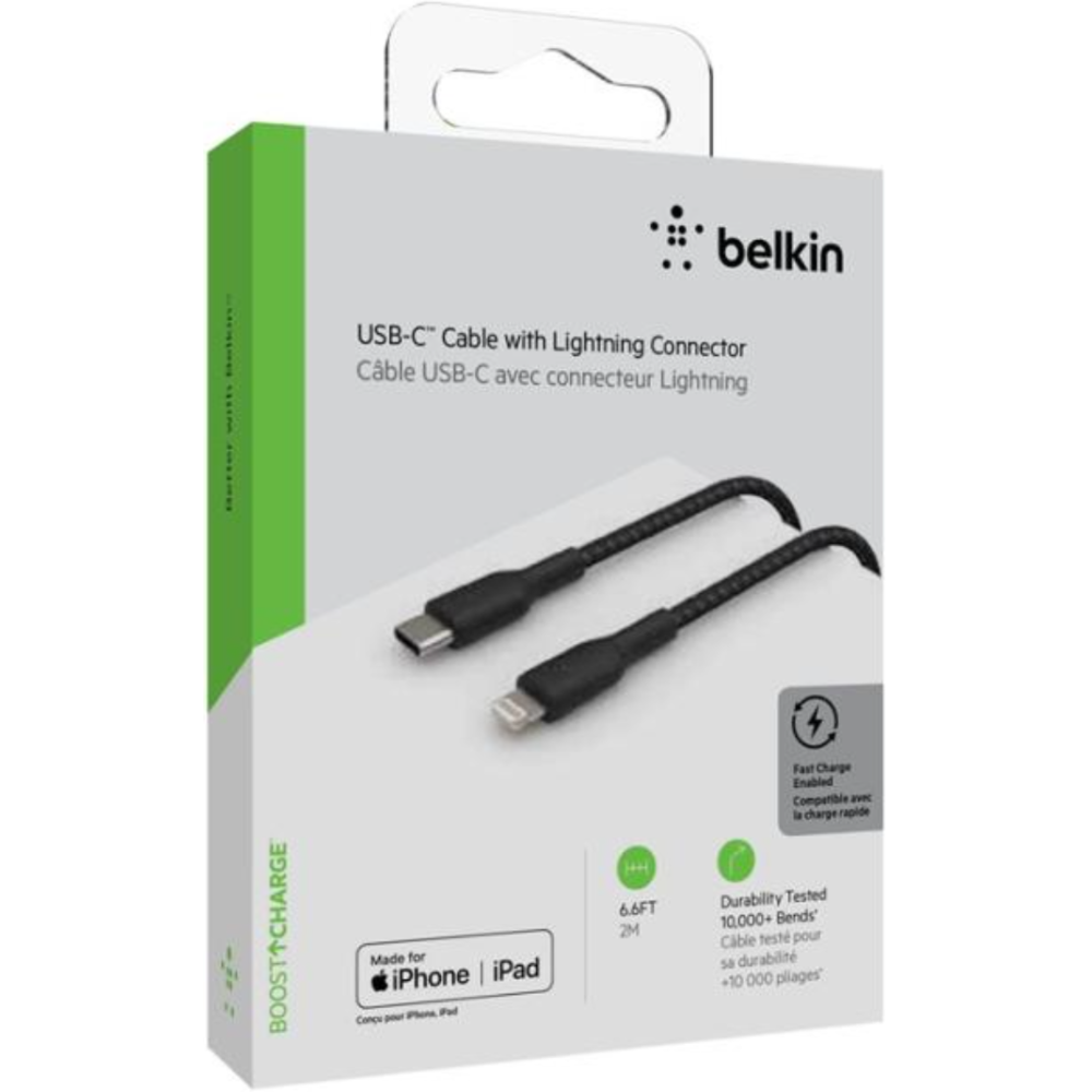 | Le Câble Belkin BOOST↑CHARGE tressé USB-C vers Lightning vous permet de connecter votre iPhone ou iPad à un chargeur rapide USB-C ou à un ordinateur compatible USB-C pour une augmentation rapide de la puissance ou pour synchroniser des photos et vidéos. Le Belkin CAA004 prend en charge une alimentation allant jusqu'à 30 W pour une charge plus rapide de votre appareil. | |